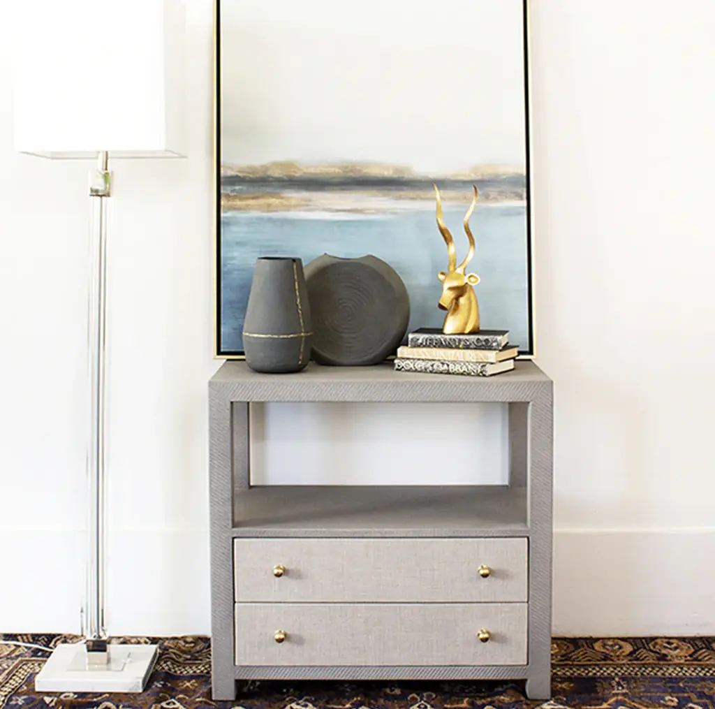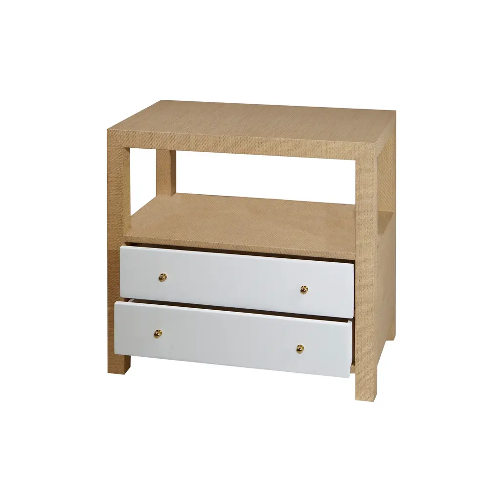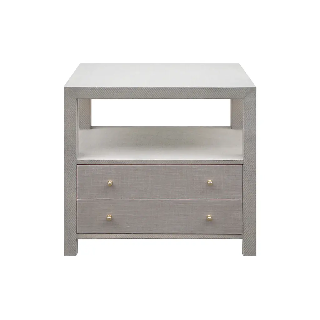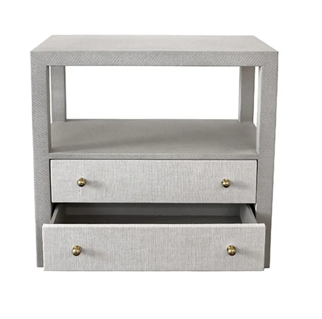With its sophisticated yet subdued combination of textures, the Worlds Away Hattie two drawer side table delivers style and grace to any room. With brass hardware and two smooth opening drawers that offer generous storage, the Hattie nightstand is a showstopper in any room!
