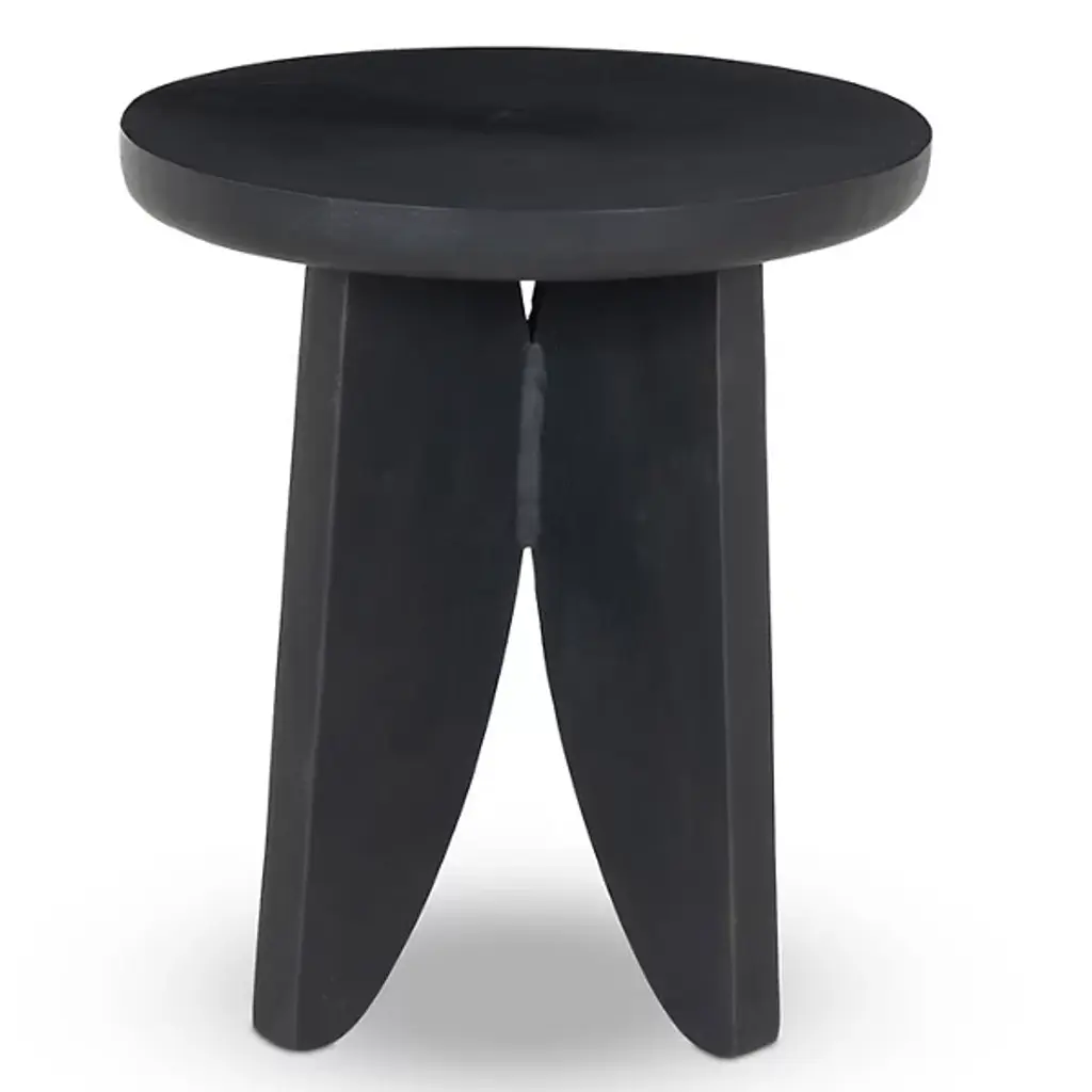 The Worth Outdoor End Table from Four Hands emerges from a single aluminum casting that forms both paddle legs and round top without joints or seams. Each paddle leg curves outward from the center, distributing weight across a broader base for stability on uneven outdoor surfaces. This casting process eliminates weak points while providing corrosion resistance for year-round outdoor durability. Unifying all surfaces, the monochromatic finish emphasizes the piece's flowing sculptural form through precise detail reproduction that remains consistent across production runs.
