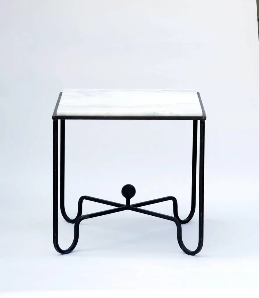Wrought iron and marble 'Entretoise' side table by Design Frères. Great between 2 armchairs.Also sold as a pair or more.Indoor or outdoor use.