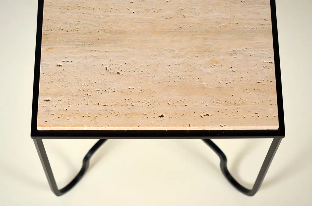 Wrought iron and travertine 'Entretoise' side table by Design Frères.