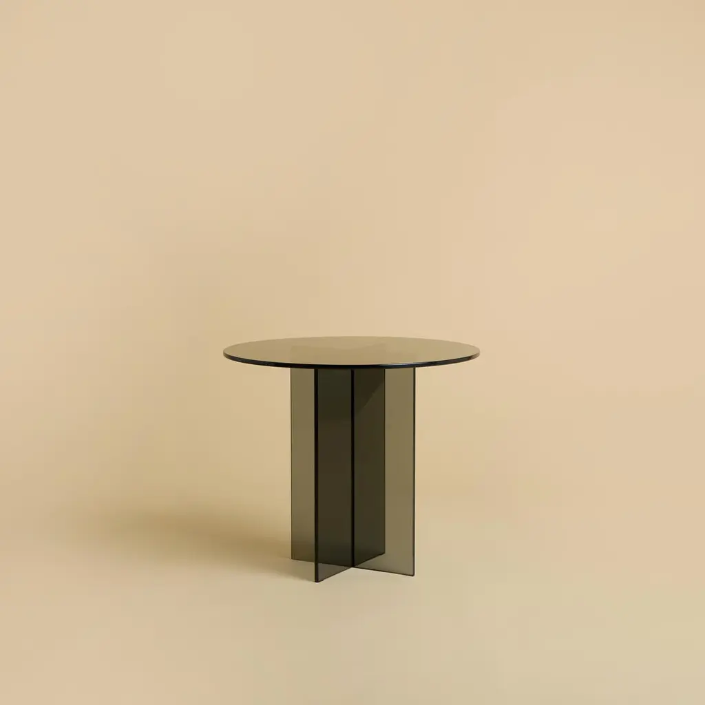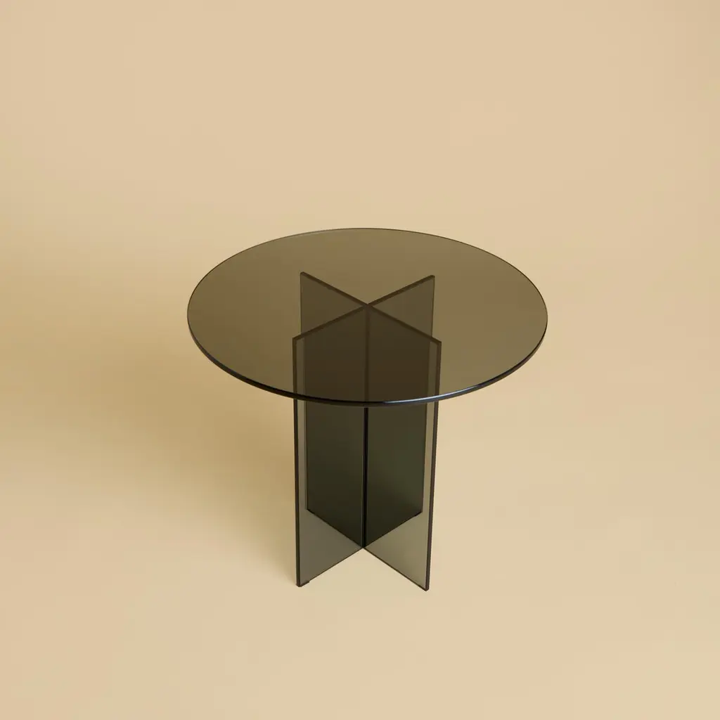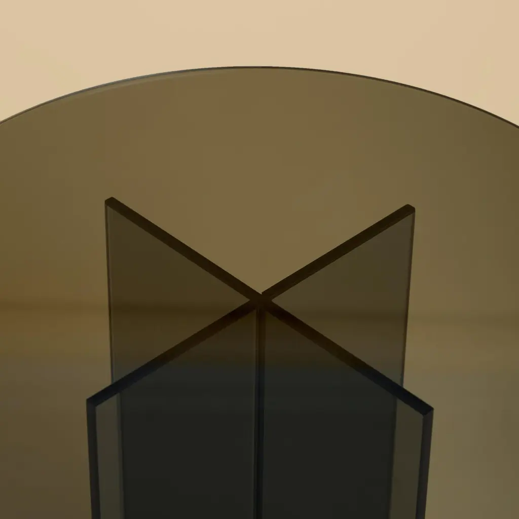 X Shaped Smoked Glass Side Table With Round Top By Lebanto