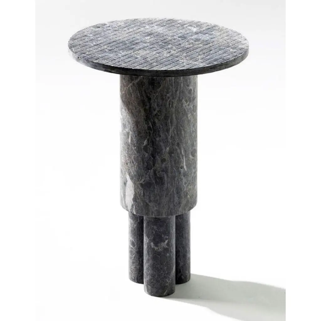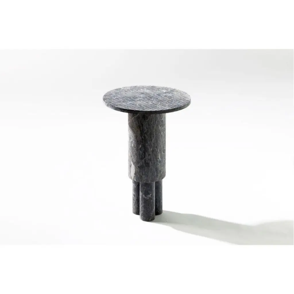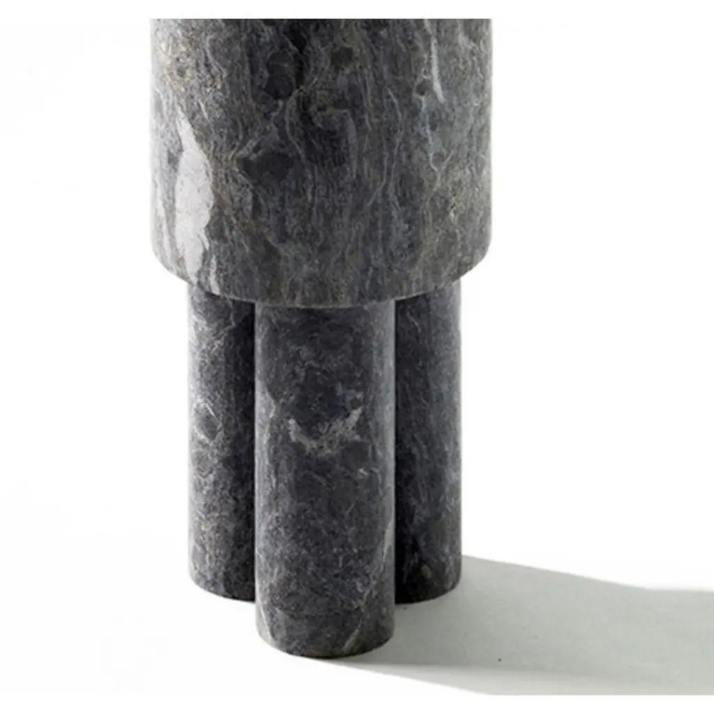 X-small game of stone side table, black silver by Josefina MunozGame of Stone CollectionDimensions: H35 x Ø30cmMaterial: marble Palissandro black silverAvailable in: tall, small and XS sizes. Interpreting the expressiveness of stone offcuts, from a block to a fragment and reintegrate them into a dynamic, organic process. A poetic and delicate vision of Josefina Muñoz and Pietre Trovanti, that explores the elegance that comes to life from the imperfect stone, turning into a home decor collection.In GAME OF STONE Josefina Muñoz, designer based in Geneva, Switzerland, transform an uneven block into a handcrafted collection of small tables with different heights, alternating in a play of shapes and compositions with a playful character. The finishing of the surface, in the light or in the shade, create rhythmic configurations. The work of Geneva-based Argentine designer Josefina Munoz, takes a macro perspective to the world of contemporary design and the influential sometimes seemingly distant factors that determine the industry’s course. With training in Design for luxury and Craftmanship, she designs with a keen sense of underlying meanings and symbolism that go hand in hand with quality. Nominated for Swiss Design Awards 2019, Winner of the Art & Design Indosuez Award 2019 of the Art and Crafts Switzerland Association, she participated in exhibitions around the world, including the Milan Design Week (2016, 2017, 2018) “De Mains de Maîtres” in Luxembourg (2017), the London Design Festival at the Victoria and Albert Museum in 2015 and Collect 2019 at Saatchii Gallery in London. Her personal work in close partnership with true artisans in different fields, finding the particularities of individual expertises that offer a whole new world of artistic expressions. With her creations, she aspires to give the opportunity for the viewer to live a moment of serenity. As a designer, she seeks to inspire, inform and provide a voice to artistic professions such as ceramic, stone and glass, among others. After starting her own studio in 2016, she is perpetually seeking out new experiences and collaborations around the world.