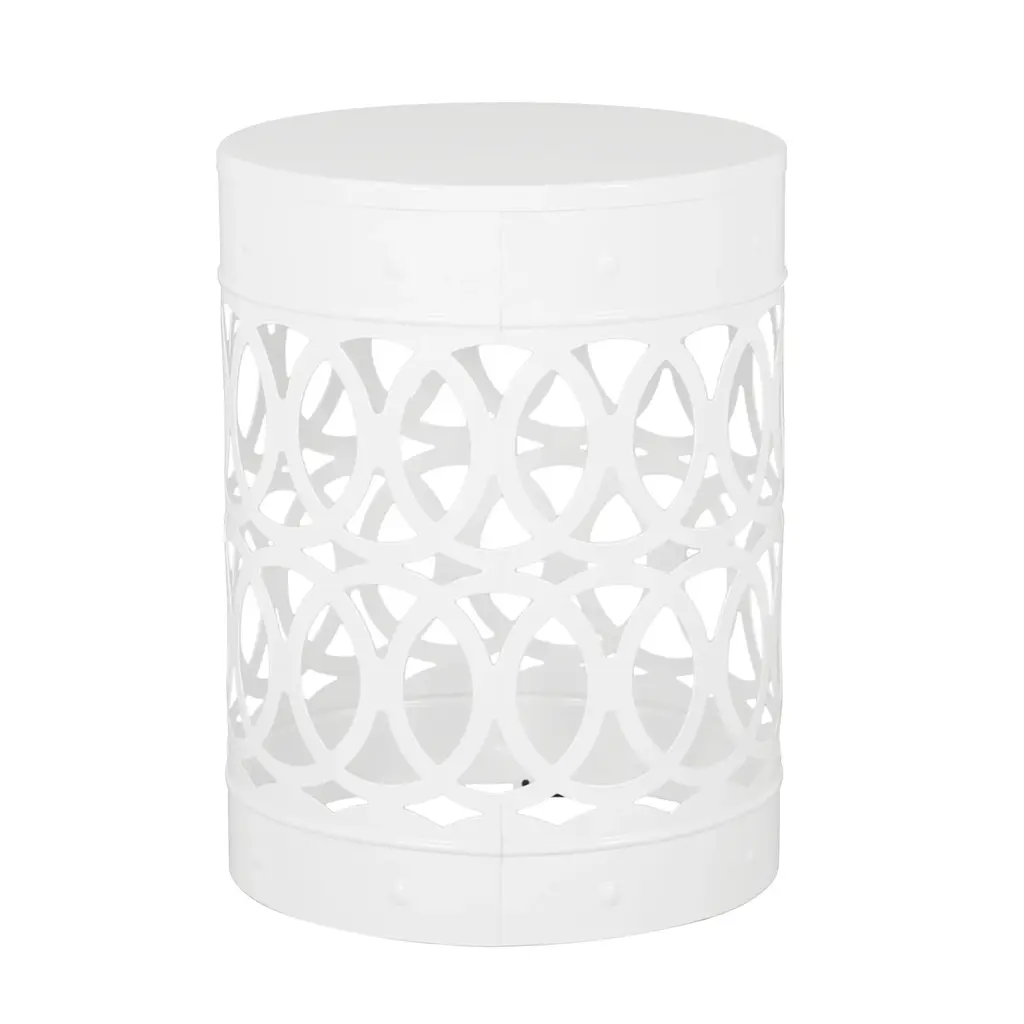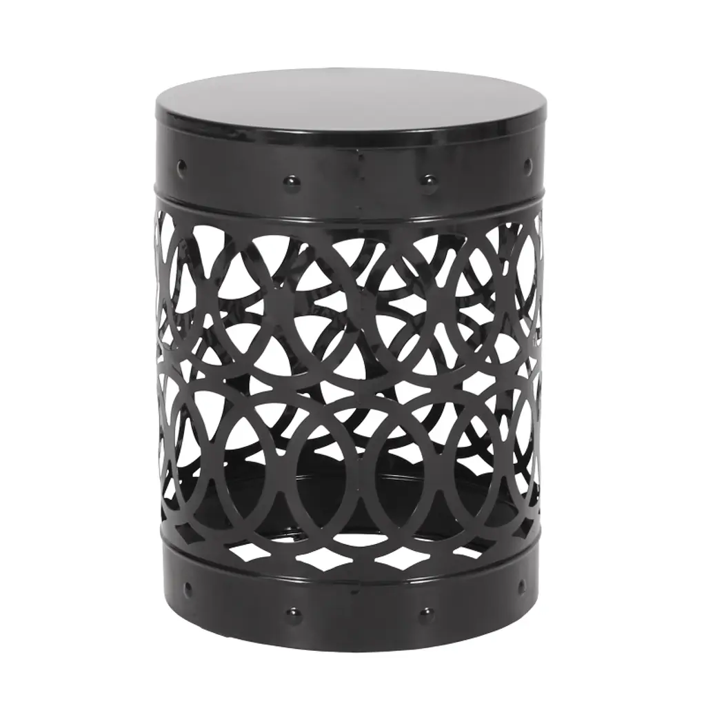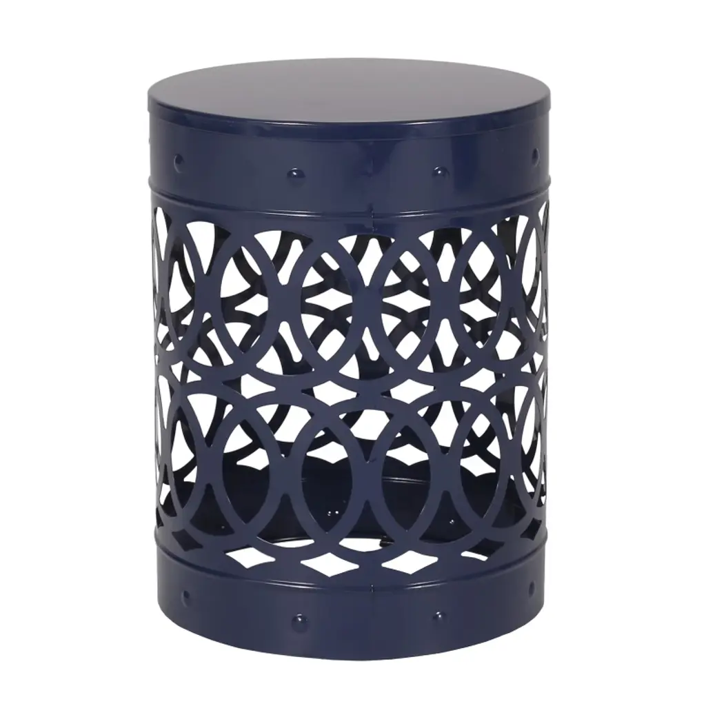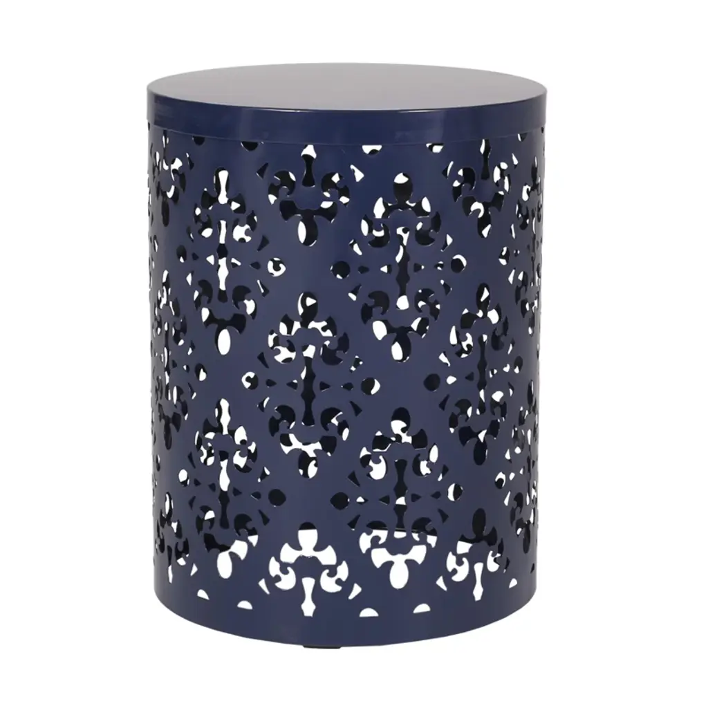 Xinghanzhenxuan Blue Modern Cylindrical Side Table, Powder-coated Iron Accent Table With Artistic Cut-out Design, No Assembly Required