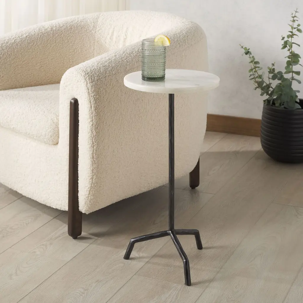 Experience the pinnacle of luxury and style with our Marble Top Drink Table. Sleek and sophisticated, this table is crafted from premium quality materials, boasting durability and strength. Featuring a sturdy base, this exquisite piece is topped with a stunning marble top, combining traditional elegance with contemporary design. The Marble Top Drink Table not only serves as a practical surface for your beverages but also adds an artistic flare to your living space. The sleek base and the contrast of the marble top create a look that is both classy and chic, making it the perfect addition to any modern home décor. This versatile drink table is not only functional but also serves as a statement piece. The rich base paired with the stunning marble top effortlessly catches the eye and brings dynamic contrast to any space. The marble's cool surface is perfect for keeping your drinks cool at all times while offering a smooth, polished surface that is easy to clean and maintain. Perfect for everyday use and for entertaining, this stunning drink table is a reflection of superior craftsmanship and timeless design. Enhance your living space with the Marble Top Drink Table—an epitome of luxury, style, and functionality. Its sleek sophistication and elegance is sure to elevate your home décor and impress your guests.