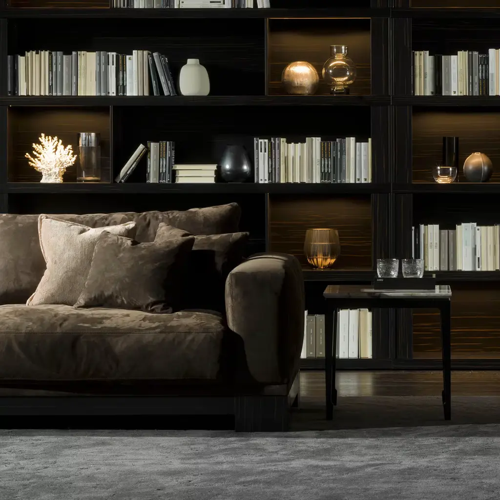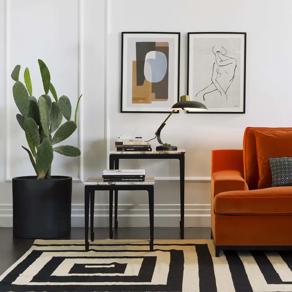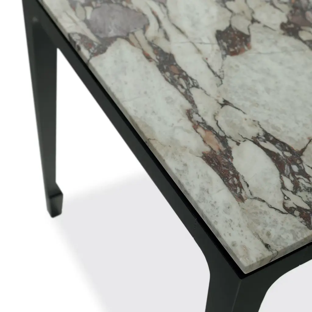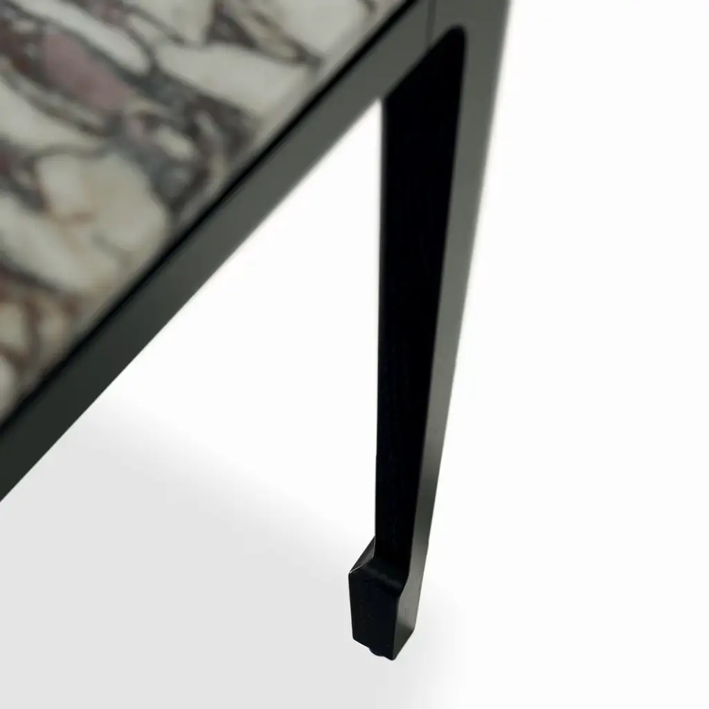 This stunning side table will be a versatile addition to a modern home. Its geometric structure is made of ash wood with a delicate sculptural decoration at the bottom of each of the four legs. The top is in marble, whose natural veins will add a luxurious accent and a refined allure to any room in the house. This piece is part of the Yang collection and can be combined with the others in the same series for a dynamic and sophisticated display.