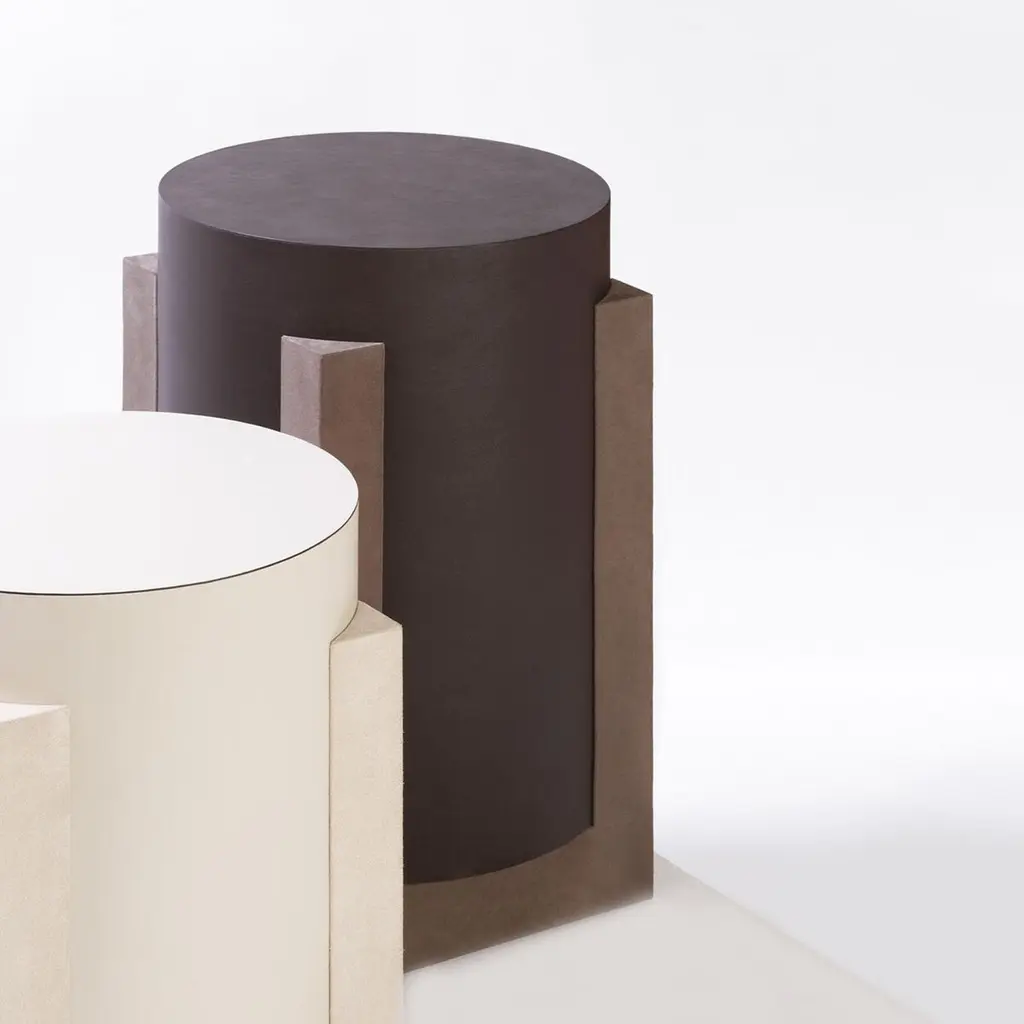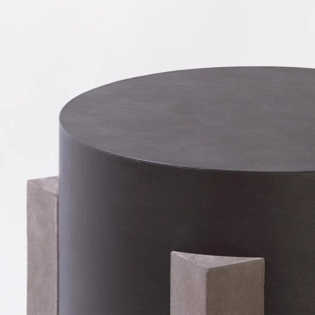 Side Table Yanis with wooden structure covered with blackgenuine leather and with base structure covered with darkgrey suede genuine leather. Also available with other leathercolors, on request.
