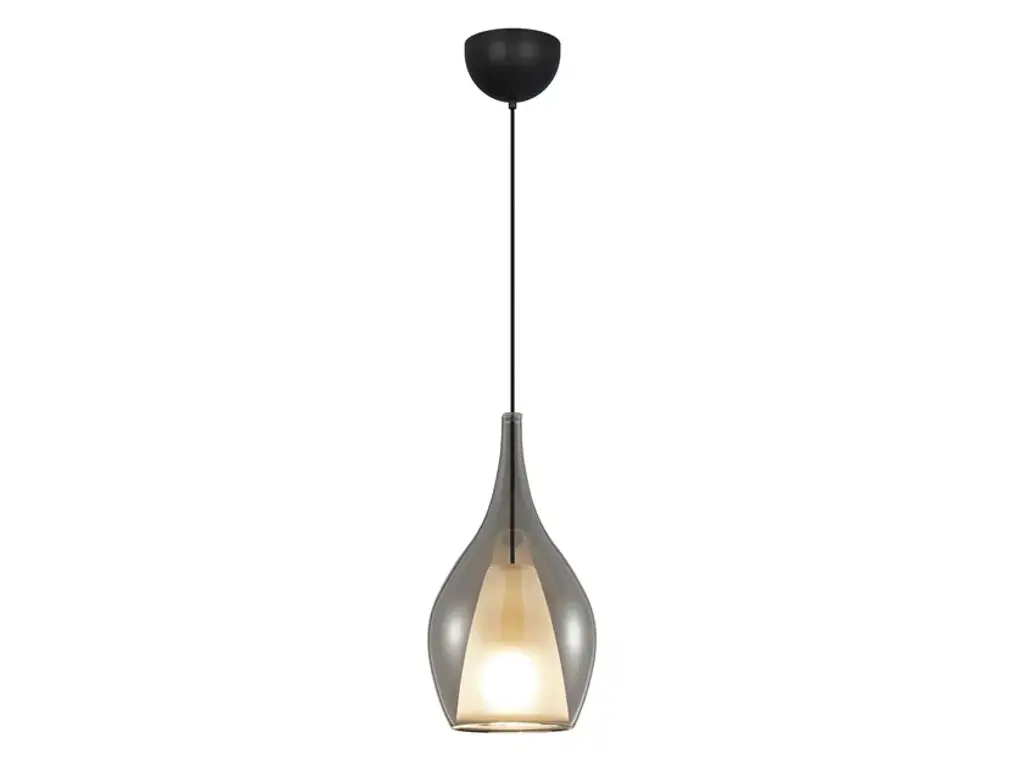 Yansun Modern 1-light Black Pendant Light With Stone-pattern Glass Shade And Beveled Edge, Adjustable Rod, E26 Base