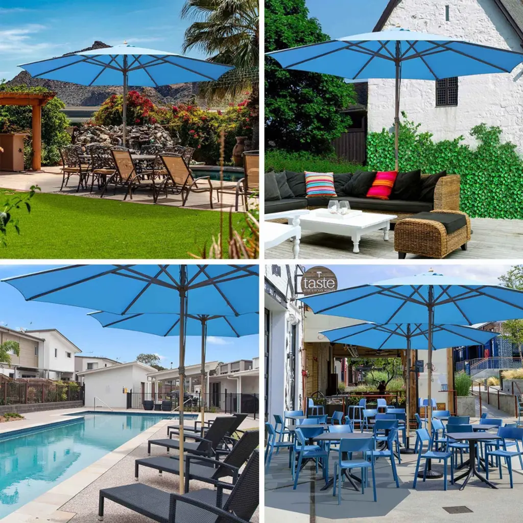 Yescom 13ft Xl Heavy Duty Solid Wood Outdoor Patio Umbrella With Base Parasol Wheels Stand For Bistro Market Table Garden Deck Yard Poolside Blue