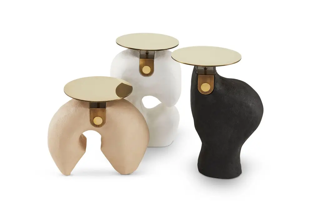 Yoruba 1 side table by Egg DesignsDimensions: 46 L x 33 D x 60 H cm Materials: Composite casting, solid brass, bronze coated steelFounded by South Africans and life partners, Greg and Roche Dry - Egg is a unique perspective in contemporary furniture inspired with a soul that’s deeply rooted in the African continent.We believe Egg has a distinctive African design dialect.We dream that our products will not only be judged by their function and form, but by the beauty of their eternal narrative.In everything we create we must answer the question, “Is it Egg enough?”Egg, is a spirited blend of heritage, passion, meaning and African soul. It stands the test of time. It’s curiosities that make you smile. It’s love and truth that can be seen from afar and equally found in the minutest details. That’s why every piece we craft comes from Africa and carries within it a part of the African soul. We’re a melting pot of tribal craft, African heritage and modern luxurious expression.“If it’s not Egg enough, it’s not worth doing!”We have widened the prism of contemporary African design in Modern Antiques, high-end Furniture, lighting and custom interiors inspired by an African provenance for a modern, international customer.