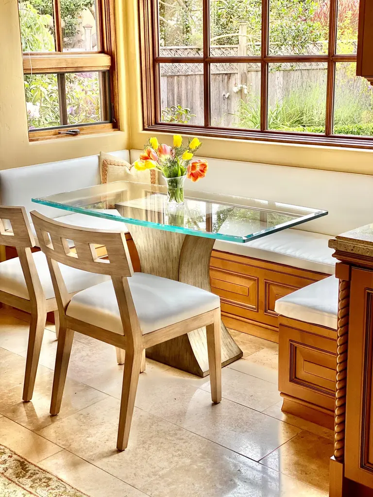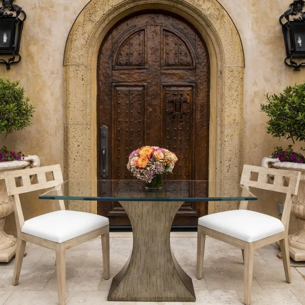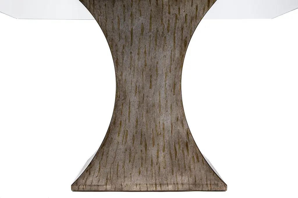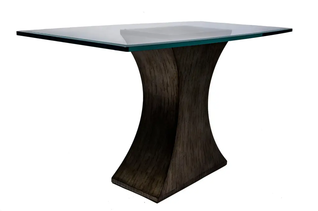Designed by Ashley Yeates, 'The Modern Hepburn,' handcrafted in California using FSC-certified wood and non-toxic finishes. COM/COLThe Young Table has a clean, tapered design and is easily movable to accommodate modularity in your home. The 54-inch diameter accent table features a decorative metal pedestal sculpture with a ultra-clear glass top and wood base. The subtle hue of the glass complements the sleek metal and wood base finishes and helps brighten up any dining or living space, which maximizes the visual space in the room. Whether used as an occasional table or for family meals, this piece is perfect for intimate occasionsDimensions: 54"W x 25-28"D x 30"HMaterials: Alder, Metal Finish, 3⁄4" Glass Top