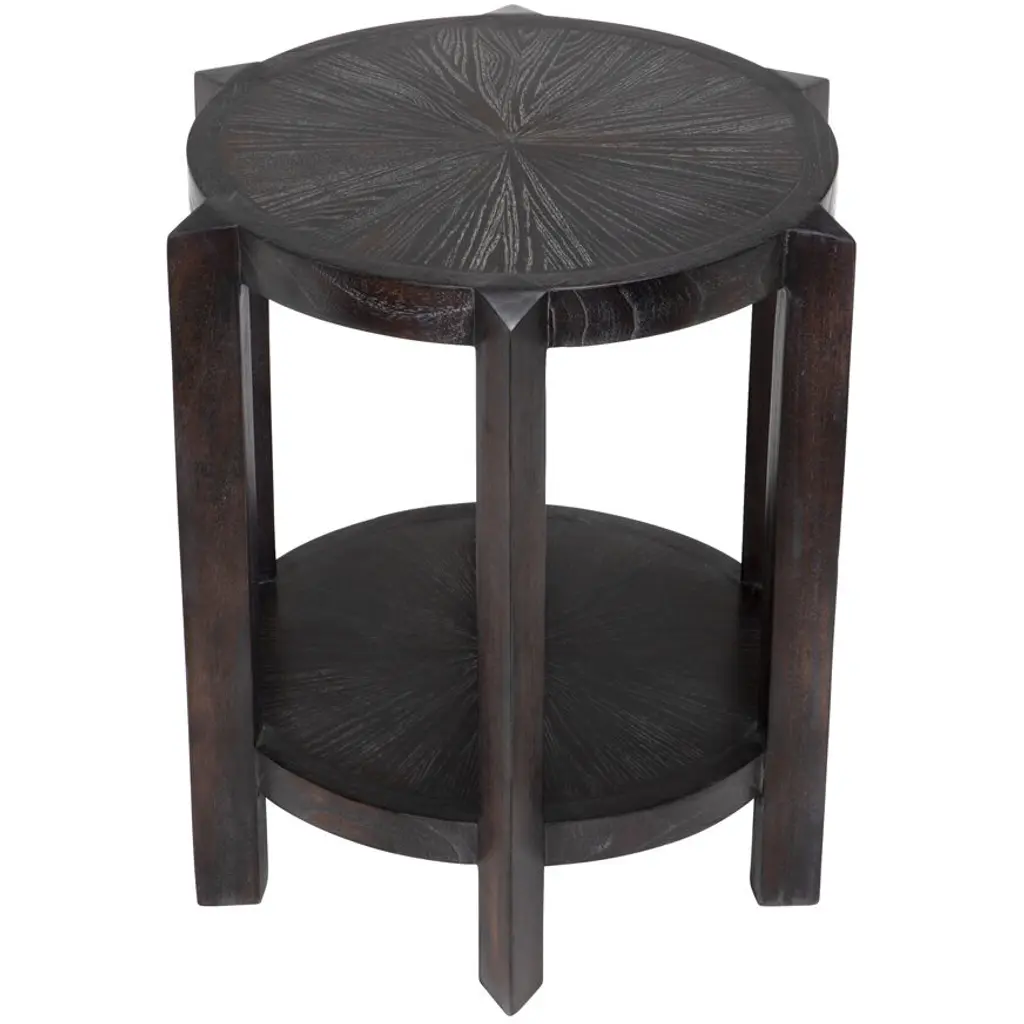 A dazzling display of design virtuosity, the artisan crafted Yuhuda side table features mindi wood that is finished in sombre to give a edgey, yet sophisticated look.