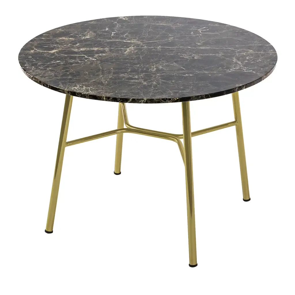 Exuding versatility and elegance, this side table is a glamorous fusion of refined materials. The sublime round top of Brown Emperador marble is paired with an industrial-style metal frame with a black finish for a luxe aesthetic. Available also with HPL and solid wood top in a wide range of catalog colors and finish, the simple design offers a clean style that will fit in both classic chic and eclectic modern taste. Please contact the Concierge for customization details.