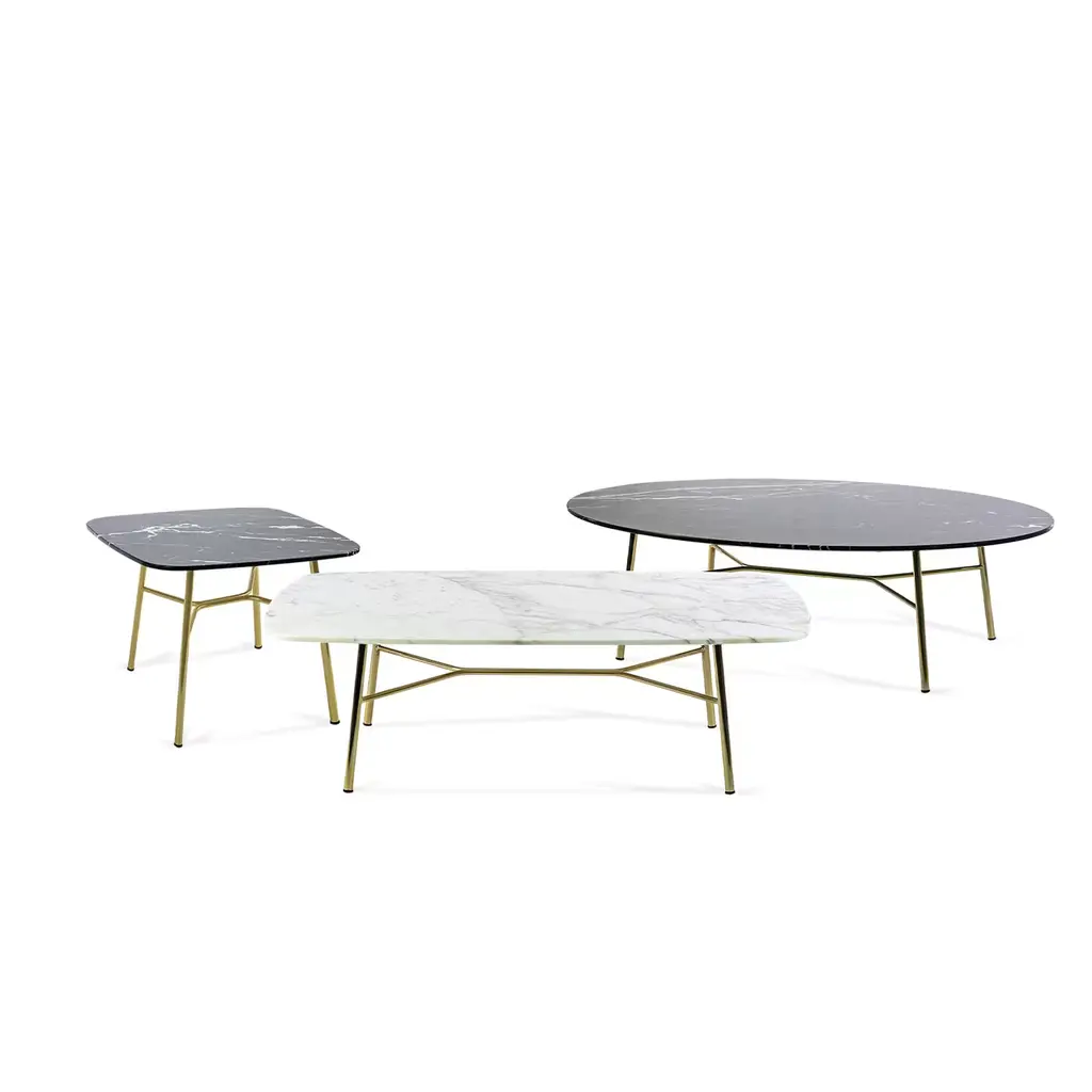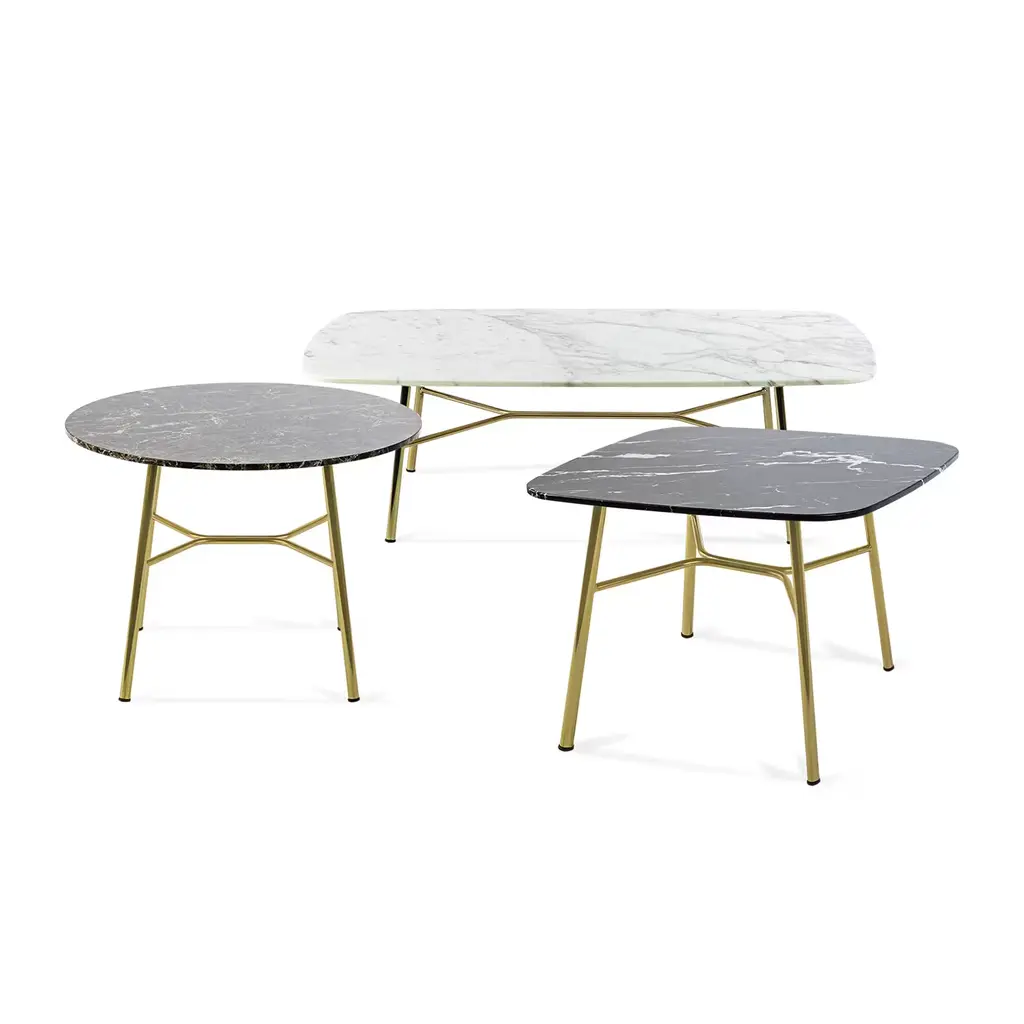 Perfect beside or adjacent to an armchair to create a stylish reading corner, this luxurious side table is the epitome of effortless elegance. At home both in mid-century-inspired and modern interiors, this side table will shine in a monochromatic decor with its black Marquinia marble top sitting elegantly atop a sleek metal base with a polished brass finish. This exclusive design from the Yuki Collection is available in various sizes and shapes, and the top is offered also in solid wood or HPL in a wide range of catalog colors.