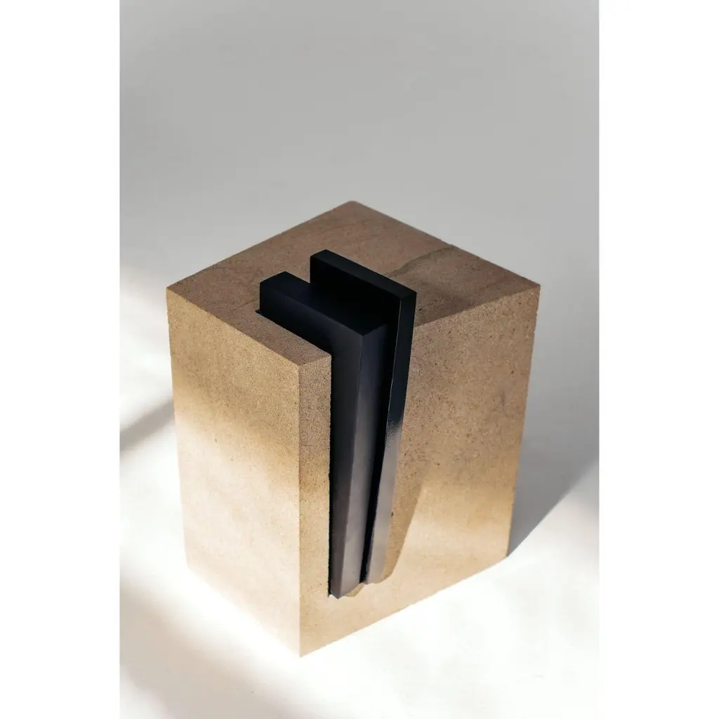YVES side table by Ira BoykoDimentions: D 36.9 x W 35 x H 55.2 cmMaterials: Glass, Stone Male origin is the basis for this work. trapezoid is an anbsolutely male shape for me. by penetrating vertically layers of glass that have different textures, they enter them partially, embellish it, without a doubt, but without breaking its wholeness...Irina Boyko is a Russian interior designer and decorator. Having absorbed the studio education of the Moscow Art Theater School at the faculty of scenography and stage decoration, he successfully practices his skills in the field of interior design.Her first furniture collection "Weightlessness" is inspired by the sketches of the Russian Suprematists Malevich and Suetin. Through an allusion to Suprematist objects, Irina talks about the concept of weightlessness. In her furniture, glass, as a symbol of lightness, prevails over such an earthly, heavy material as stone.