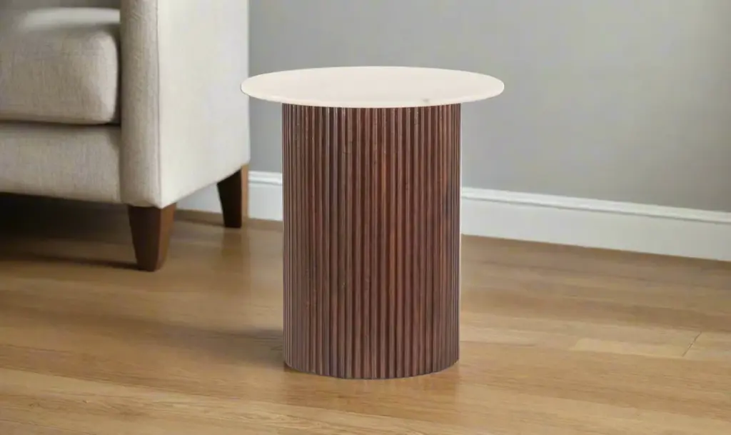 Sleek, chic, and oh so functional, the Zach End Table lets you keep your essentials close at hand with its rounded pedestal shape. With its cylindrical pedestal style base of solid parawood, supporting a rounded table top with bullnose edging, you’ll be sure to add some major modern style points to your space.