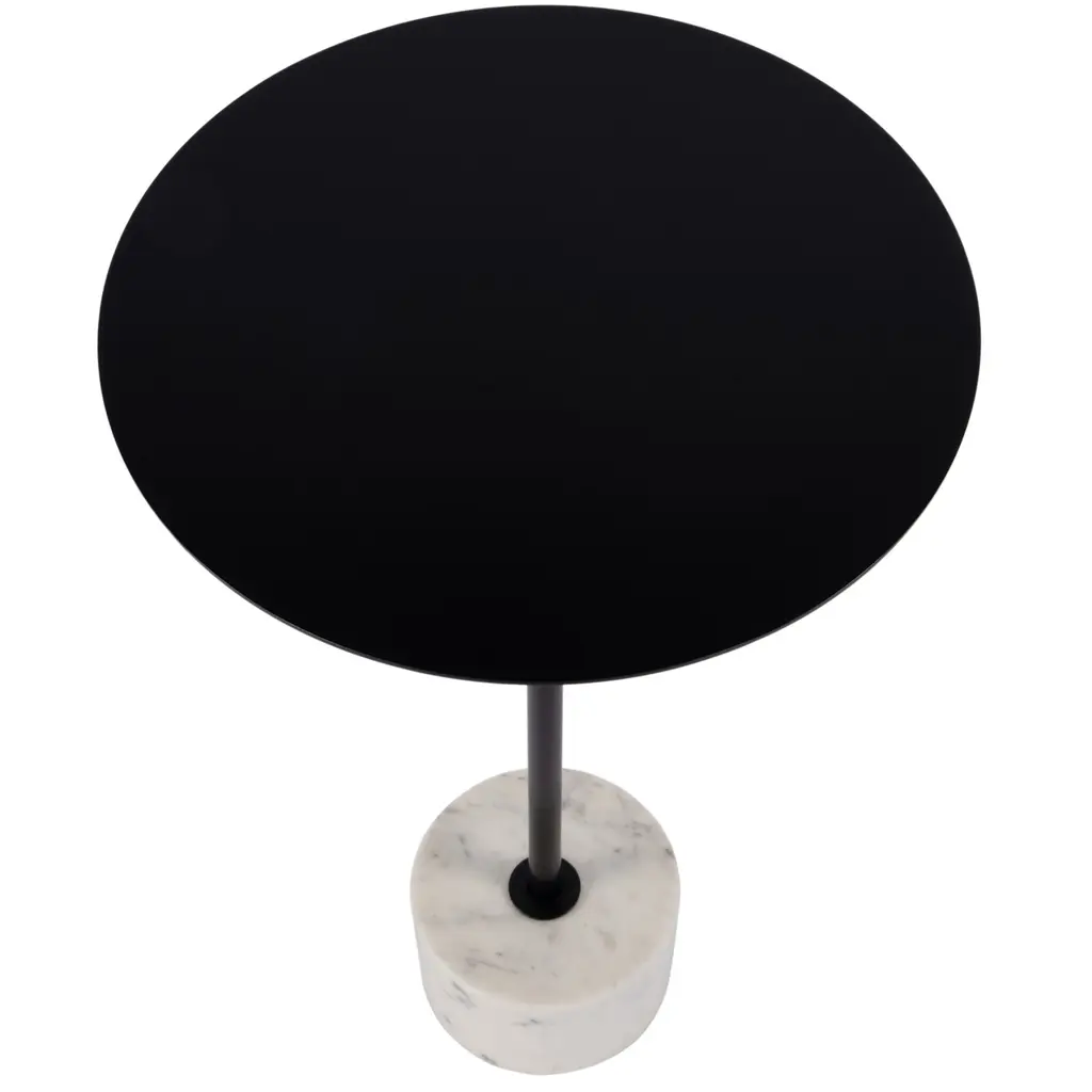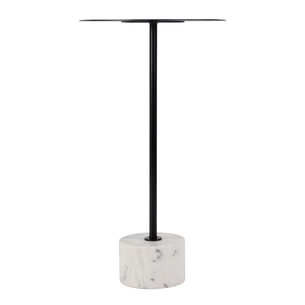 Elevate your decor with the minimalist elegance of the Zane 13.75 in. W Round Iron and Marble Side Table. This piece combines sleek iron with the timeless beauty of Banswara marble, featuring a smooth iron top and slender base grounded by a solid marble foundation. The striking contrast exudes modern sophistication, making it perfect for small spaces. This table adds a touch of luxury and refinement to any room, ensuring it stands out in your home.