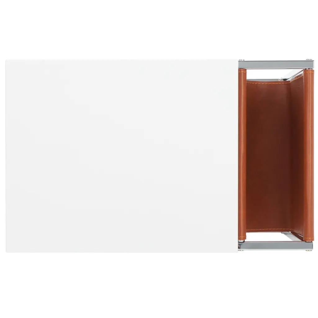Embrace the sleek style and functional appeal of our Eugina Side Table. Featuring a clean-lined and tailored profile, our side table delivers industrial undertones. Its wooden tabletop and metallic base receive a subtle pop of color with a handy pocket, adorned in faux leather fabric. Durable and mildew resistant, the end table stores your newspaper and magazine while providing adequate space to place your morning cup. Place beside a sofa or armchair, the end table creates the perfect reading nook.