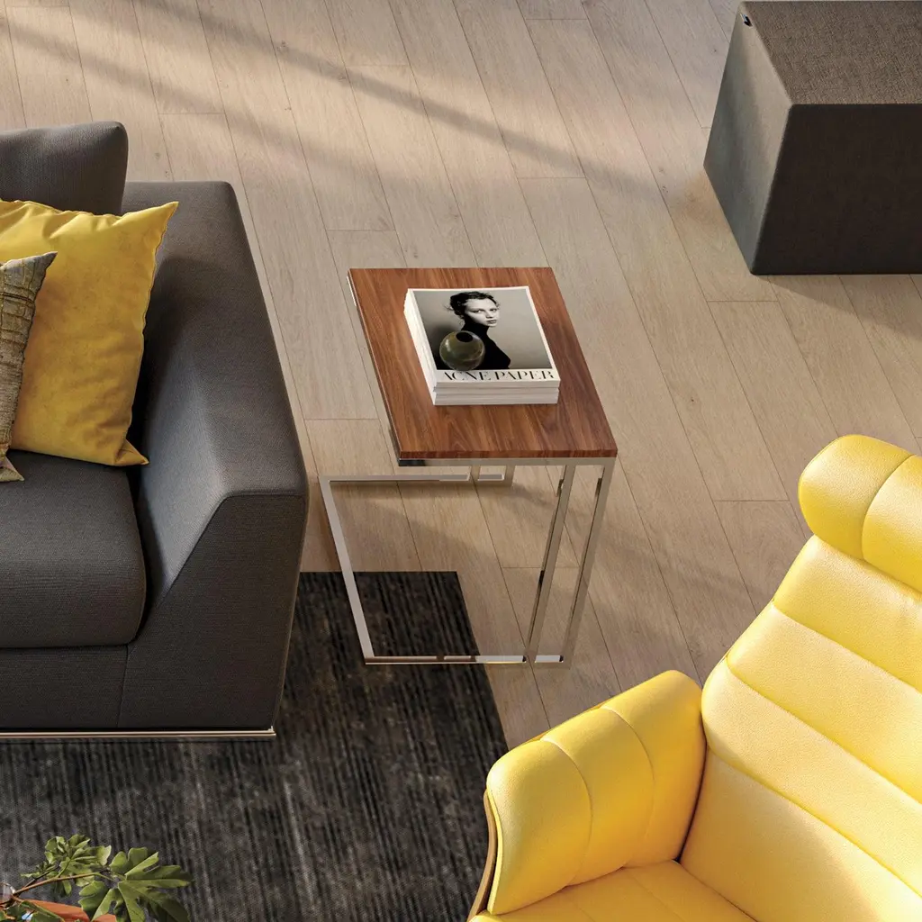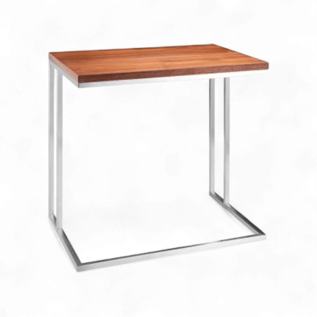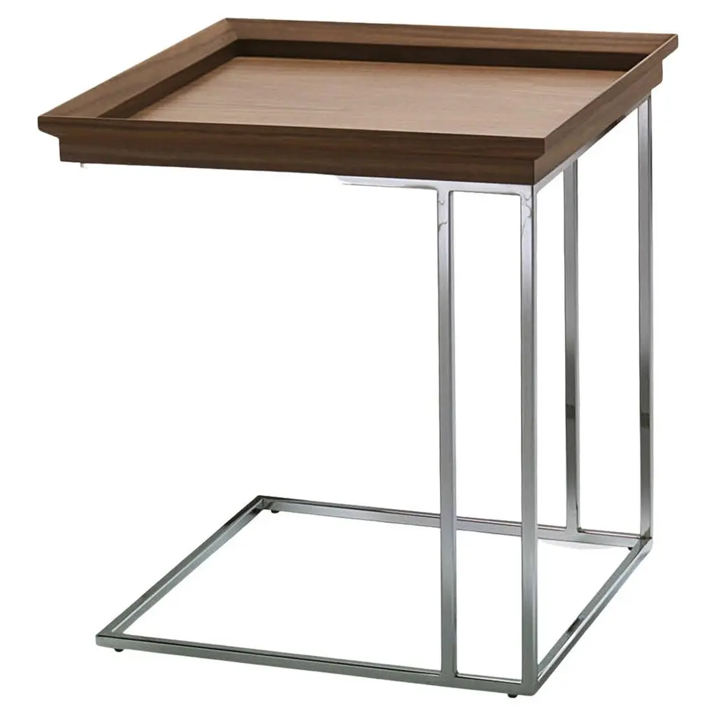 The Zary Mid Century Modern Side Table Walnut is designed to fit an array of specifically modern and contemporary homes. The walnut wood surface rests atop a silver finish frame, and works great as an end table or nested with a sofa. Its simple and clean design makes this table incredibly versatile, yet functional. The smooth architectural design of the Zary Table will provide any room with minimalist but modern detail.Stainless Steel, Space Saver