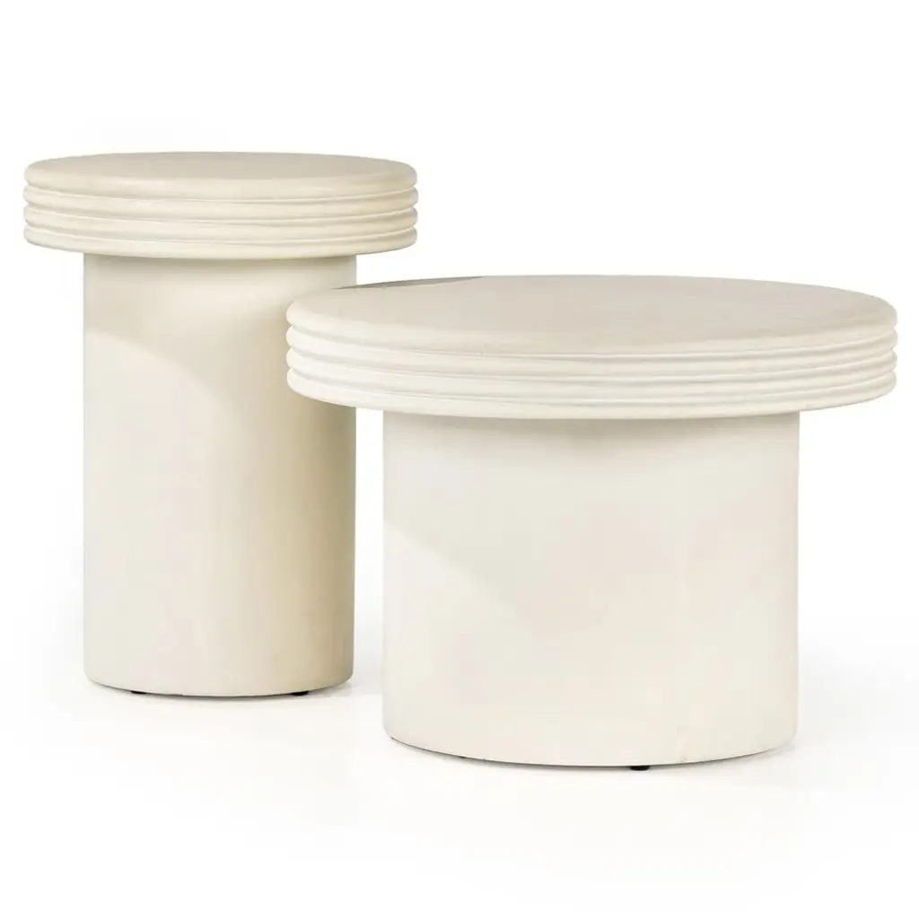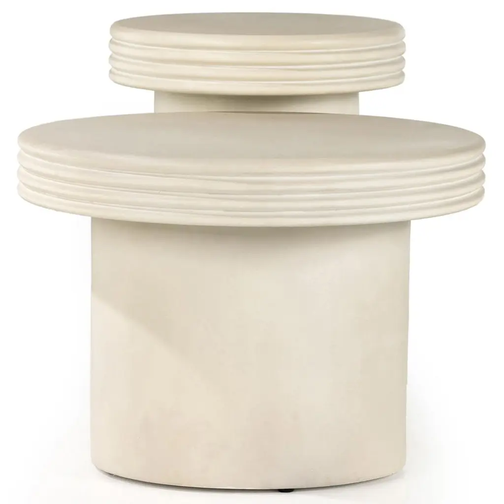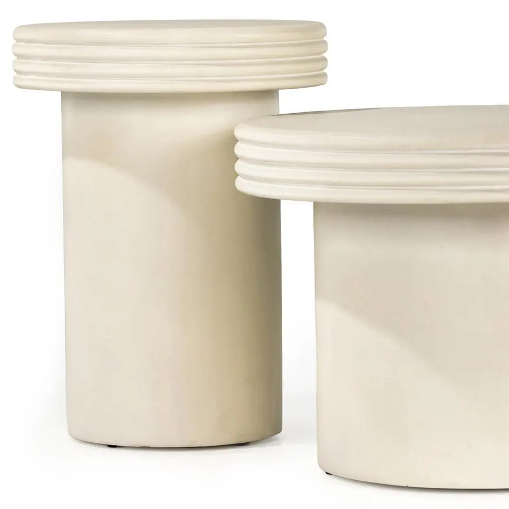 Zaynah Industrial White Concrete Round Outdoor Nesting End Table - Set Of 2