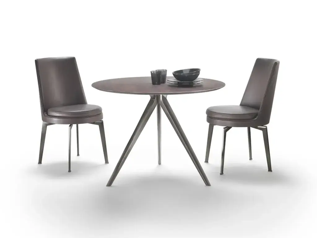 A light, contemporary spirit defines the extensive collection of Zefiro dining tables. Extremely versatile, thanks to the wide range of sizes and materials in which it can be crafted, the Zefiro table can confidently and stylishly furnish any setting and meet the most diverse needs. Available in satin, chrome, burnished, black chrome or champagne finish, or painted black or white, the tapered cast-aluminum legs lend an air of lightness and dynamism to the Zefiro tables. The tops come in round, square, oval or rectangular shape in a number of different sizes and can be crafted in versions with Canaletto walnut or ash veneer, stained in a number of shades; or in various types of luxurious marble.TECHNICAL SPECIFICATIONSFrame in metal with satin, chrome, burnished, black chrome, gun metal finish, white 100 or black 900. Rests on tips made of thermoplastic materialTop in wood Canaletto walnut with natural finish, or stained Canaletto walnut extra or coffee; or, in ash with natural finish or stained walnut, cherry, teak, coffee, wenge, ebony or brown; or, with lacquer finish in white, black, grey-green, lilac, mocha, salmon, dove grey, pine green, mustard, saffron, burgundy, teal, grey-blue, moss green or brick. Also available with marble glossy White Carrara, glossy Black Marquinia, glossy Calacatta Gold, mat Calacatta Gold, glossy Emperador, mat Emperador, Emperador Light, Marron Damasco polished or mat, Stardust grey polished or matArt .23880-23881-23882 not available with marbleSmall tables with wood top h.40 cm, with marble top h.41 cmTables with wood top h.73 cm, with marble top h.74 cmArt. 23883 – 23884 Top in Canaletto walnut veneer with natural finish, or stained Canaletto walnut extra or coffee; or, in ash veneer with natural finish or stained walnut, cherry, teak, coffee, wenge, ebony or brown; or with lacquer finish in white, black, lilac, pine green, salmon, grey-green, mocha, dove grey, mustard, saffron, burgundy, teal, grey-blue, moss green or brick.
