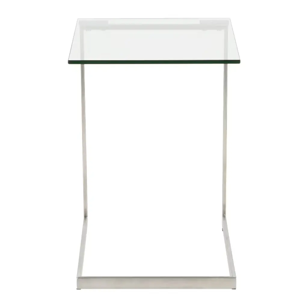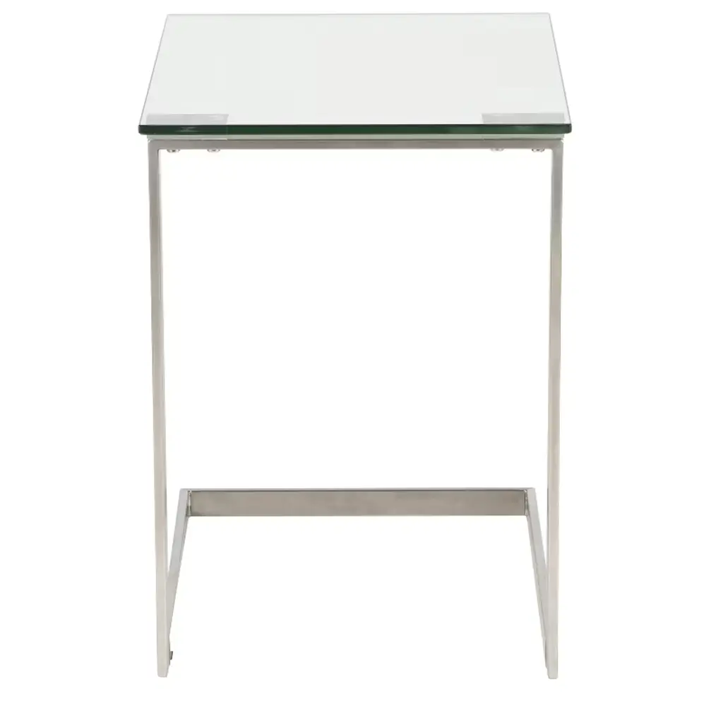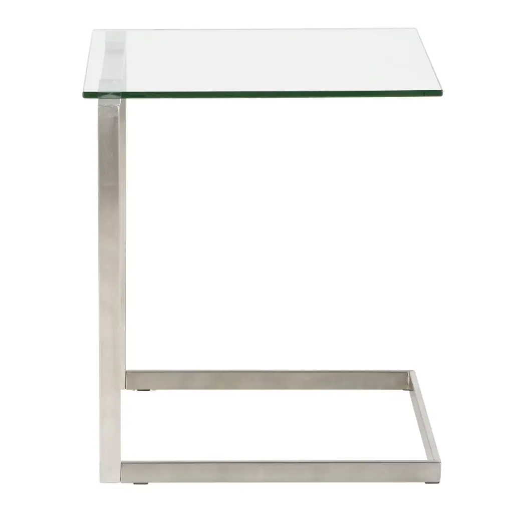 This end table features a gracefully cantilevered tempered glass shelf on a brushed stainless steel frame. Blending beautifully into a variety of decors, you couldn¡¯t ask for more from such a stylish end table.Contemporary stylingTempered glass topSturdy stainless steel constructionLightweight and portableSophisticated design