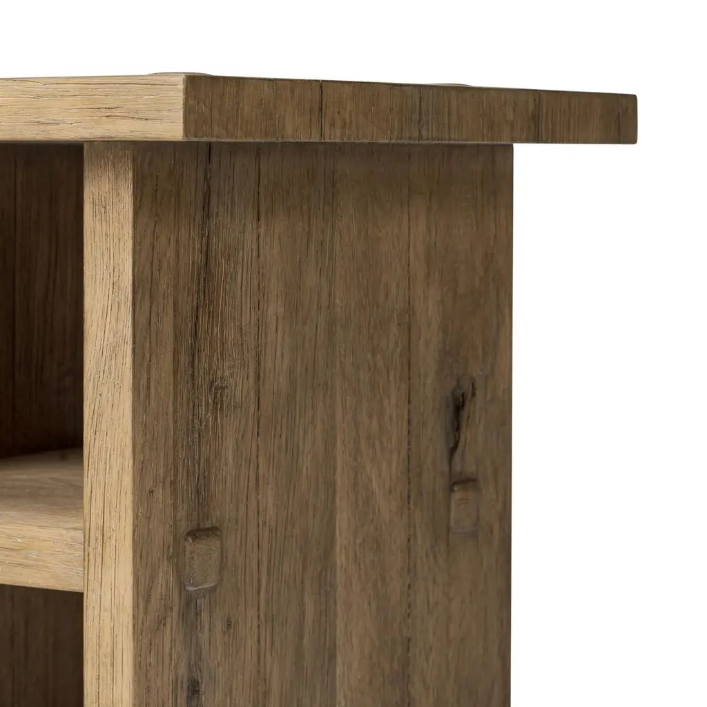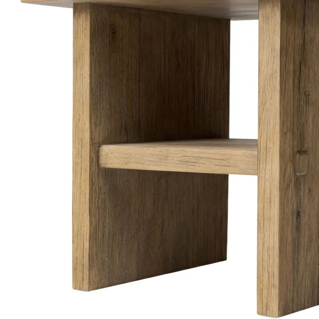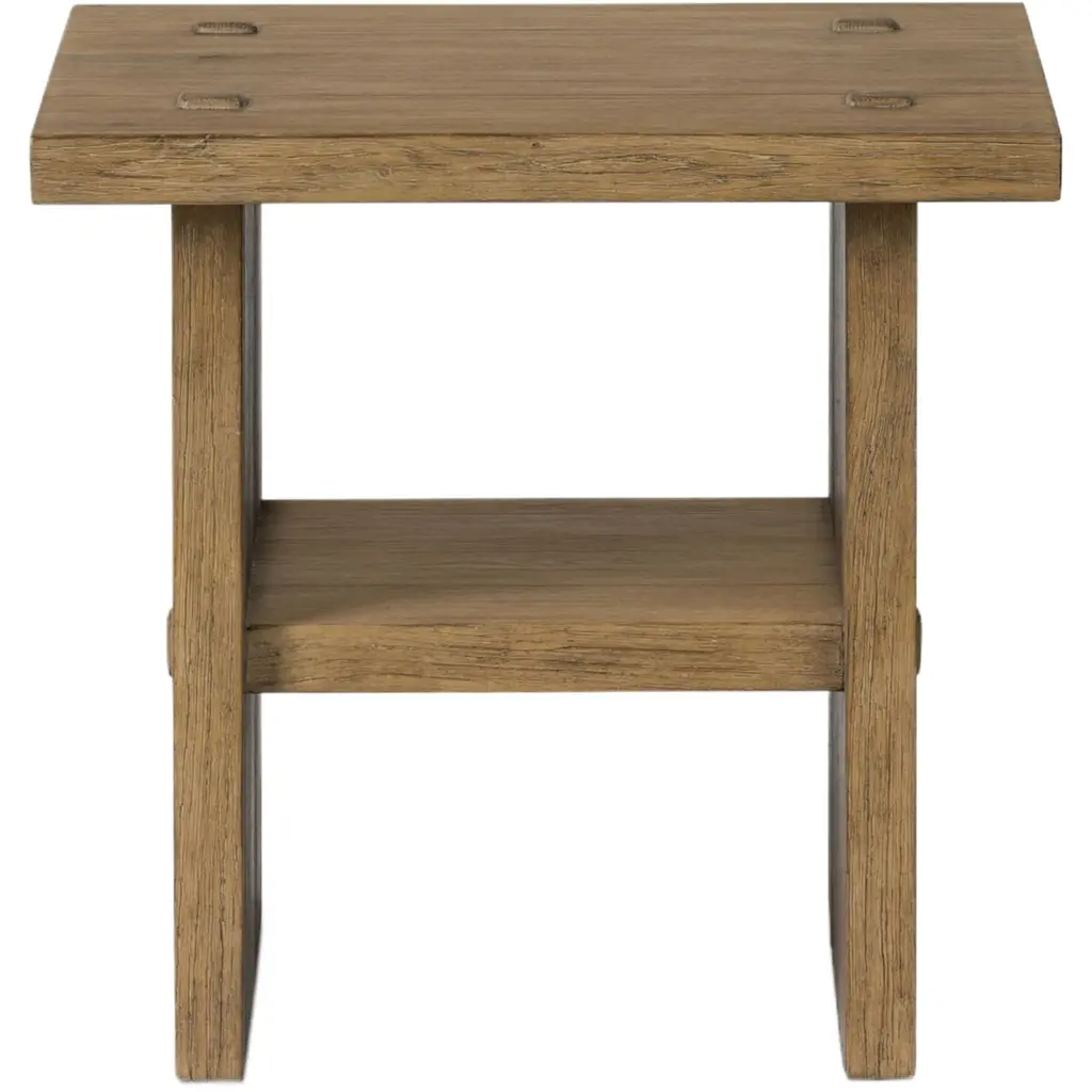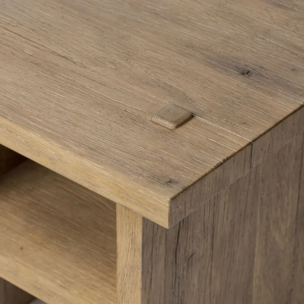 Simply shaped, material driven. A paneled end table features pull-through joinery, perfectly sized to keep your favorite book or drink within reach, with lower shelving for bonus storage in any room. A design collaboration by Amber Lewis and Four Hands.