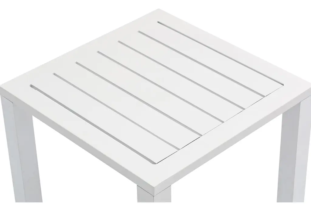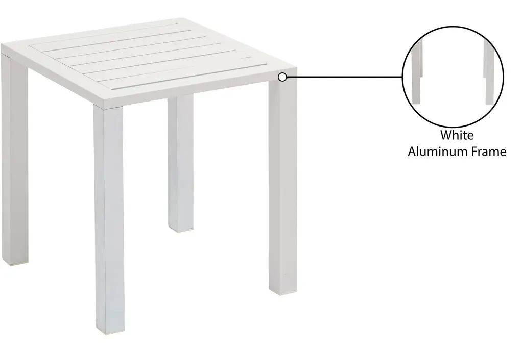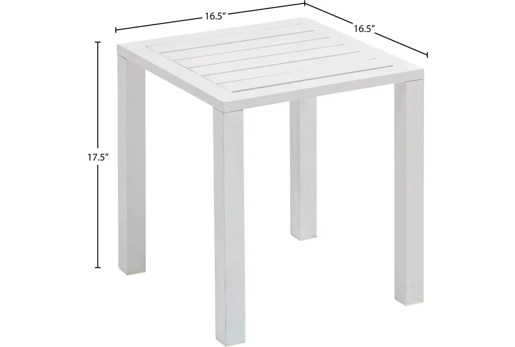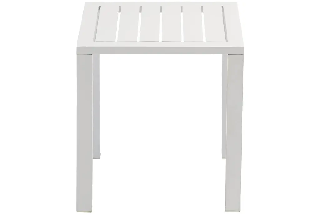 The Zephyr Outdoor 17" Patio End Table is a perfect addition to your modern outdoor space. Crafted from durable white aluminum, this table combines style and functionality. Its contemporary design makes it a versatile piece for any casual setting.