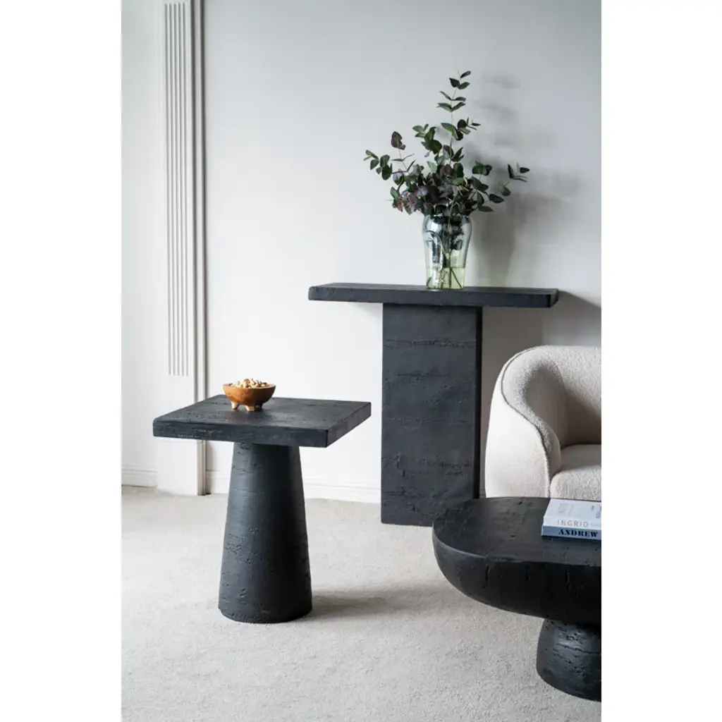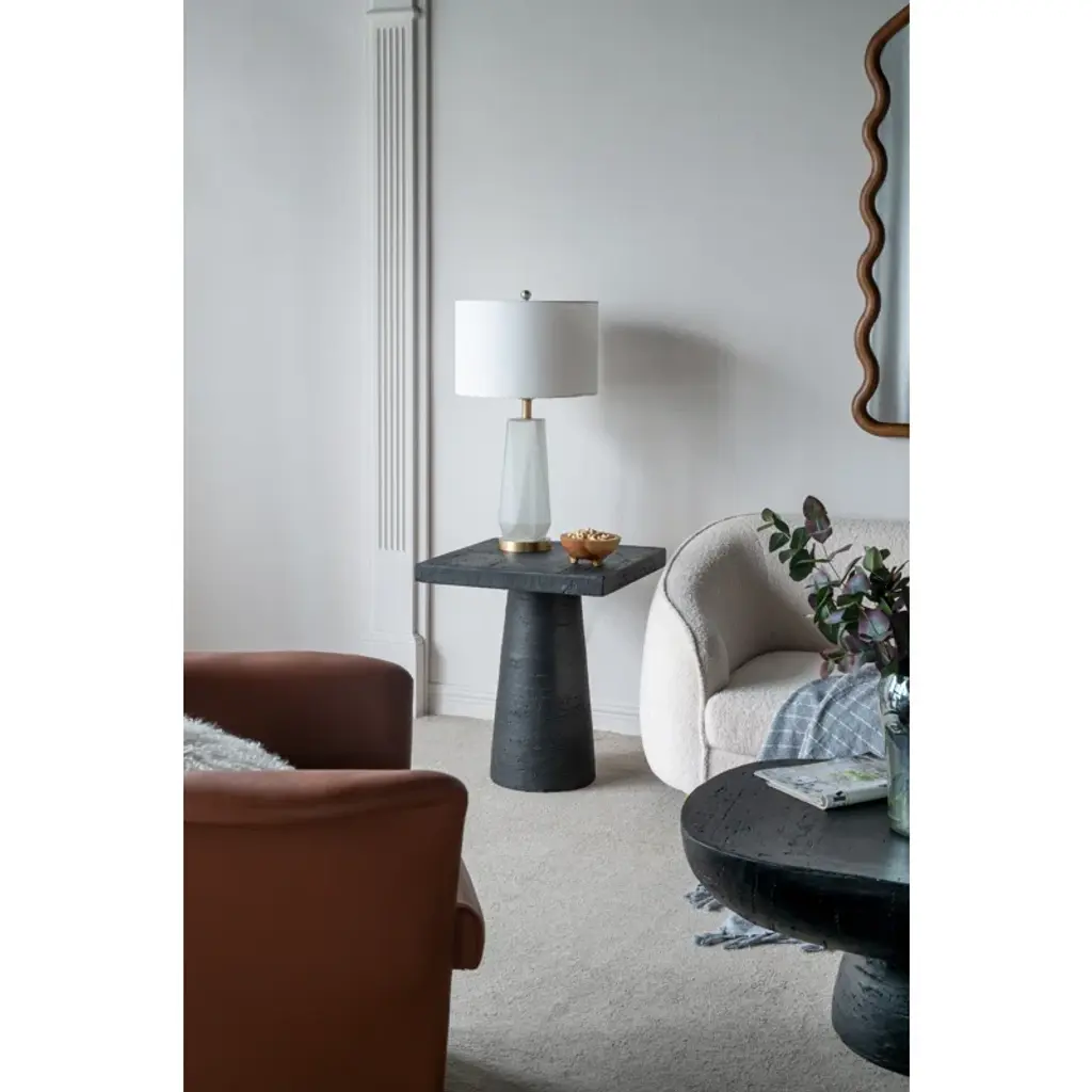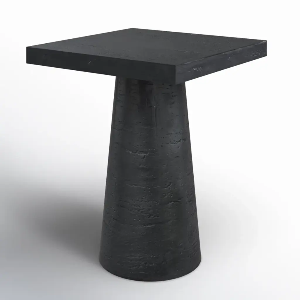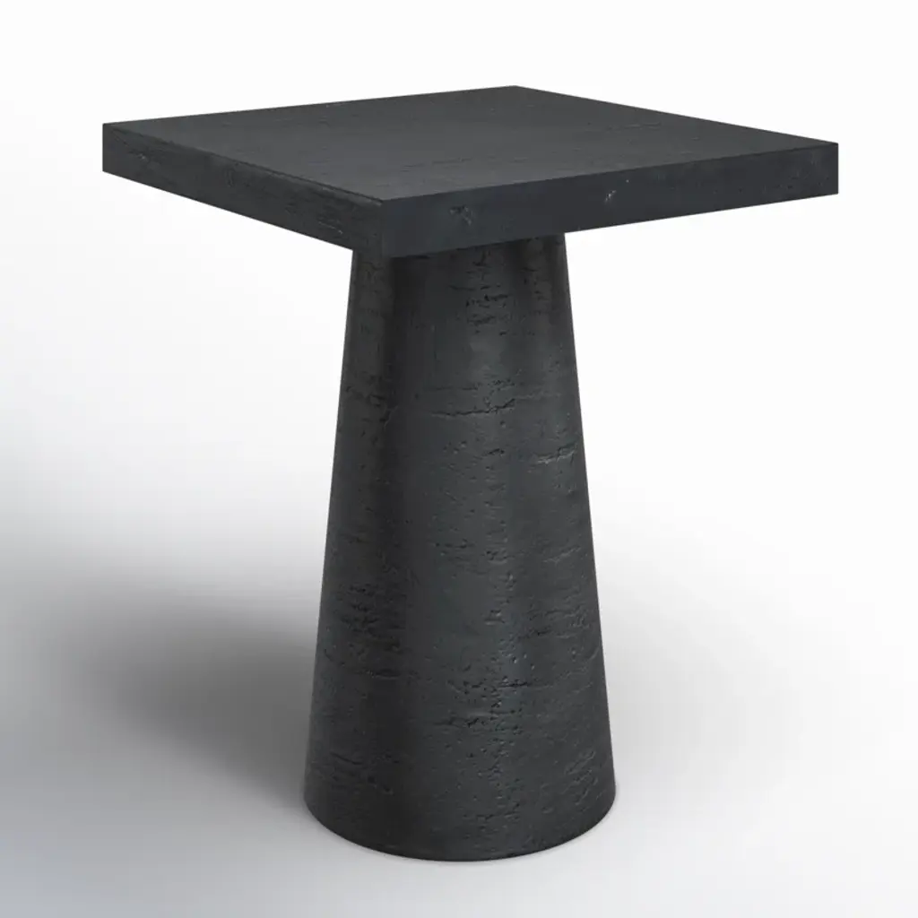 Expertly crafted from 100% durable cement, this bold side table boasts a clean-lined square top, a rounded pedestal base, and a dynamic finish. Standing 24 tall and 20 wide, this table offers great versatility, thriving in your space as a nightstand, entryway accent table, plant stand, or a chairside piece in your living room.