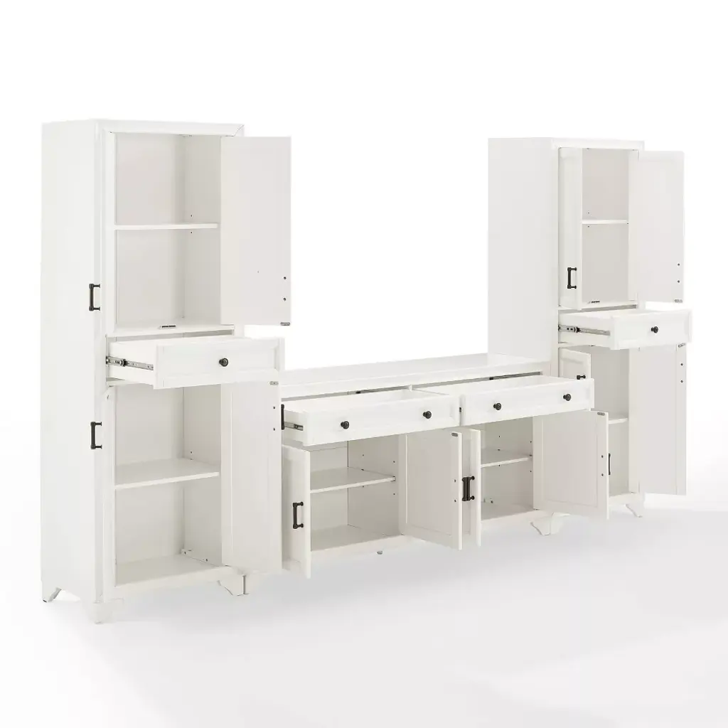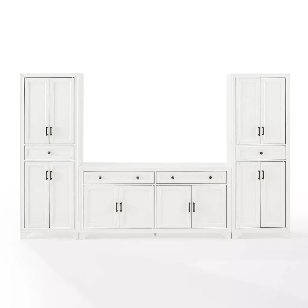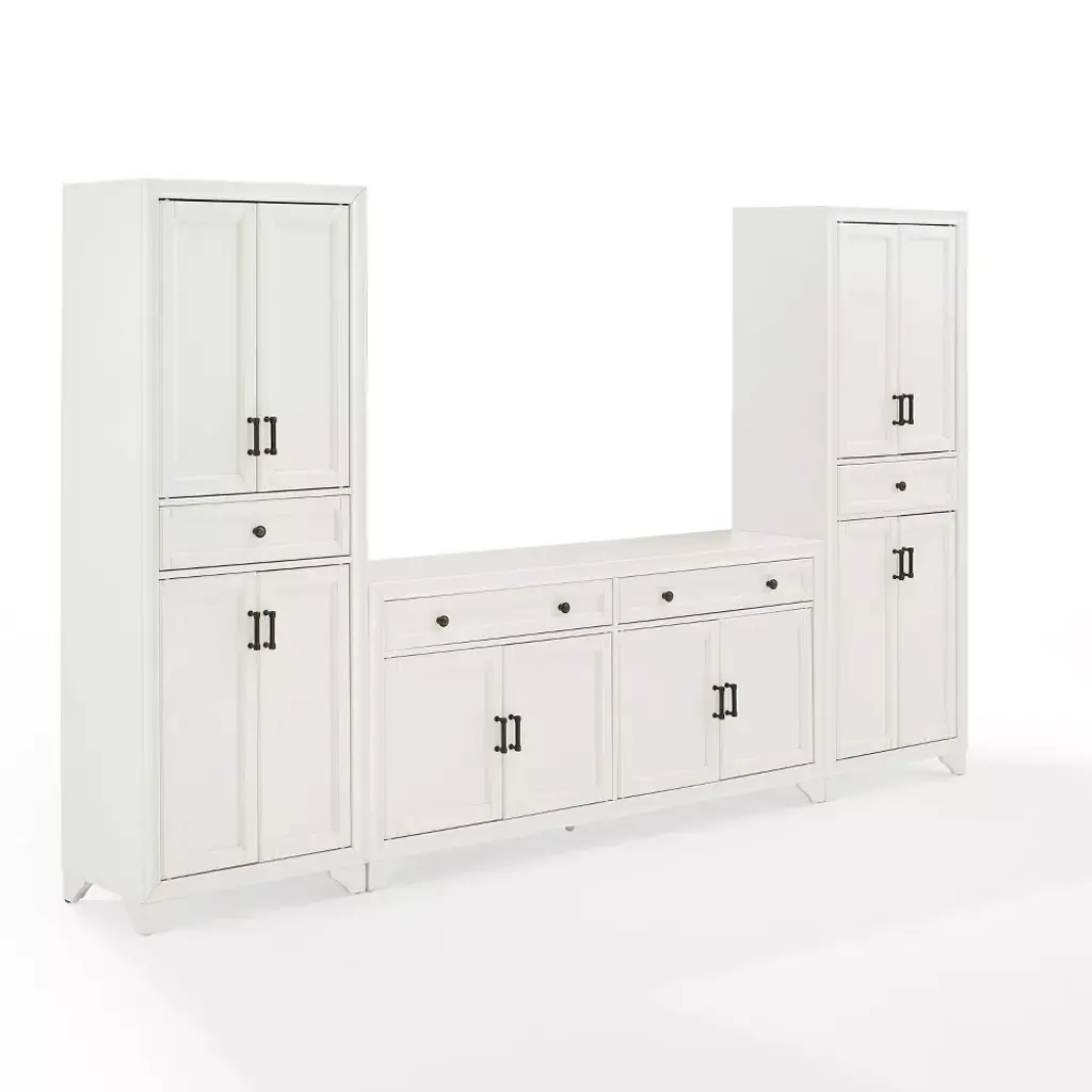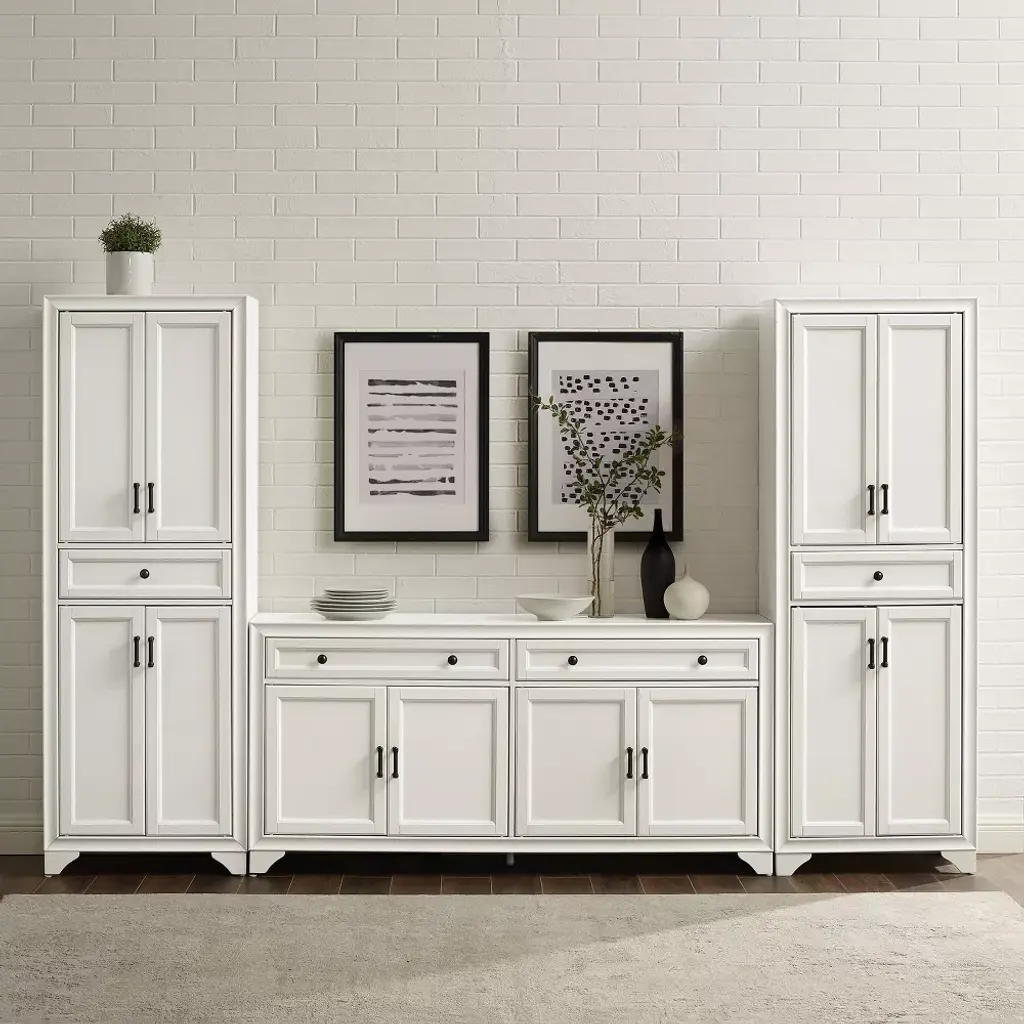 3Pc Tara Sideboard And Pantry Set Distressed White - Crosley: Kitchen Storage, Adjustable Shelves, Mdf