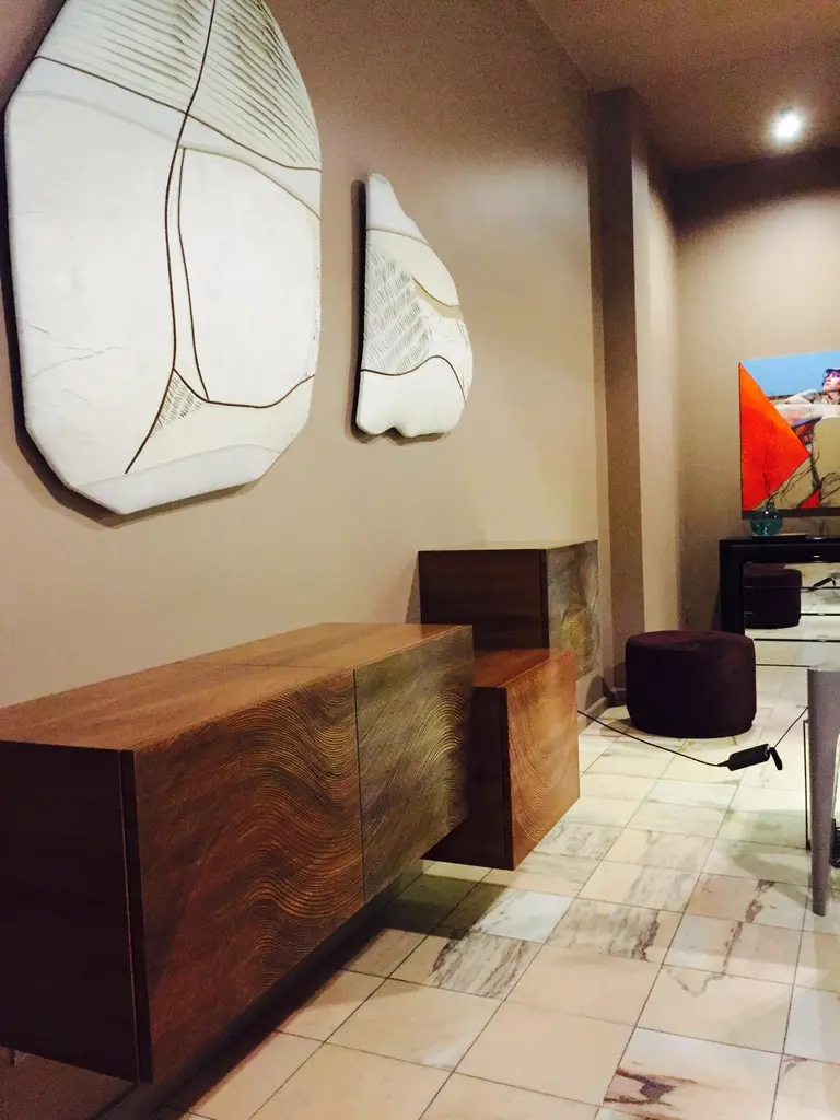 Sideboard in walnut with art intervention by the sculptor Paulo Neves.Bespoke / CustomizableIdentical shapes with different sizes and finishings.All RAL colors available. (Mate / Half Gloss / Gloss)