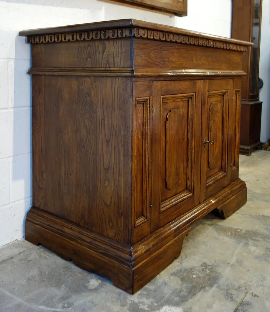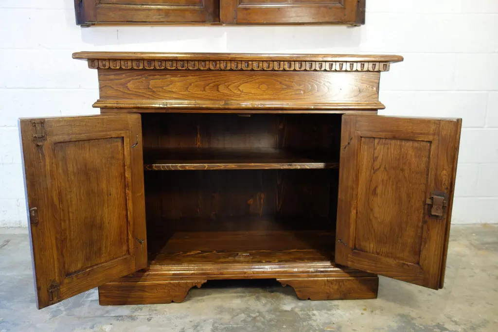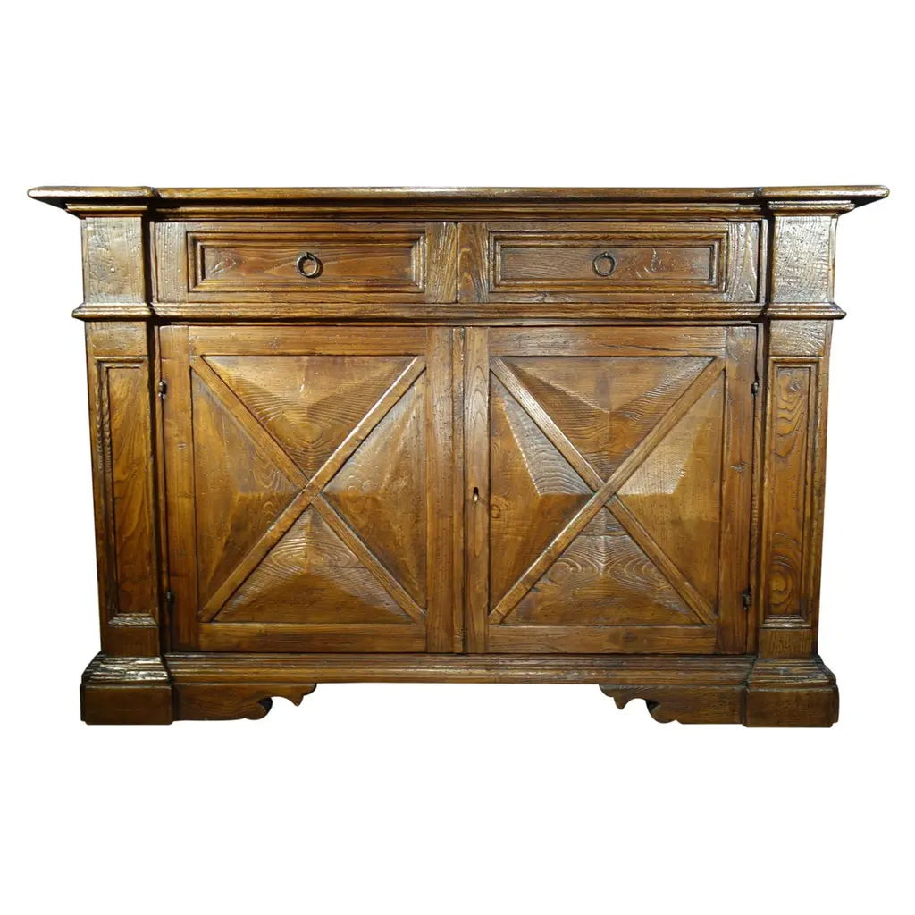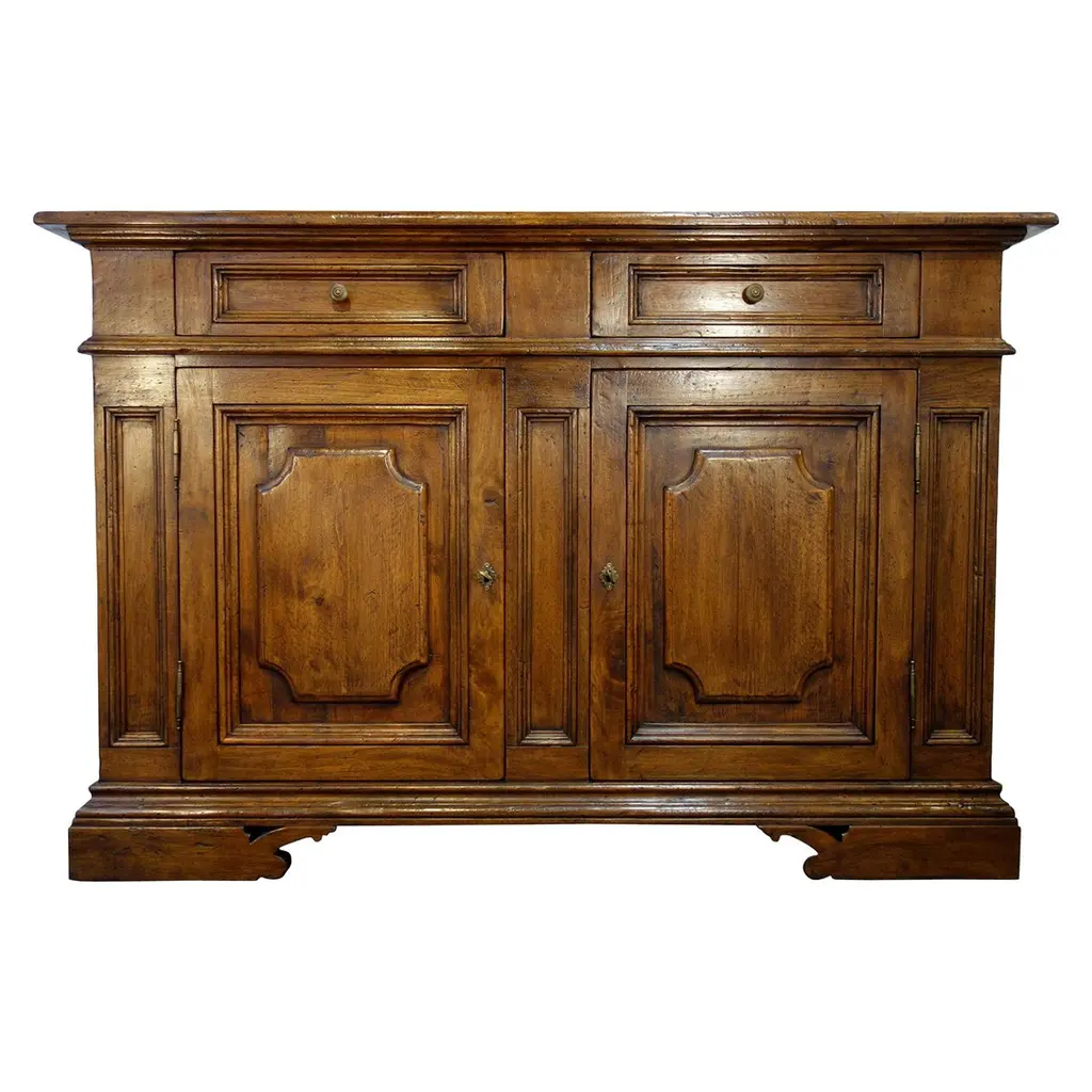 “MAGGIORE” Credenza - The Italian Art & Handcraft of Fine Antique Reproduction“Maggiore” 2-door Credenza, with (or without) Renaissance dentil detail:Measures: 43”W x 35”H x 24”D (each door measures 14”W x 22”H x 1.65” thick, front pillars each measure 4”W x 22”H)Optional finishes include:- Natural blonde shellac- Classic shellac- Espresso Dark stain shellac - Moro blackened shellacGloss, satin & distressed painted finishes also available to orderAlso available in Old Chestnut, Poplar, or Walnut with smooth or brushed grain finish.We quote custom sizes - - just choose a style from our full website catalog for your individual taste, give us a call or email and we will work out the details. Your order will be built by hand in Italy - made to order to specification - and shipped on our containers to Encinitas, CA.Bellini’s Old World Collection styles are adapted from Renaissance designs from the 15th to 19th centuries. For over 40 years, our craftsmen have been recovering & finishing old Italian hardwoods. Their lives have been immersed in the craft of antique furniture in traditional Mediterranean styles. Each piece is artfully handcrafted with aged Italian solid hardwoods and fine-tooled hardware, built to your custom needs by quote in size, configuration, color & patina.
