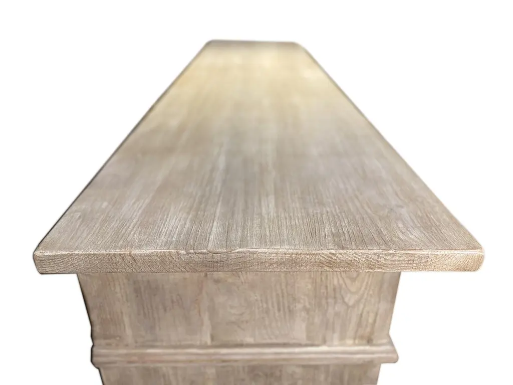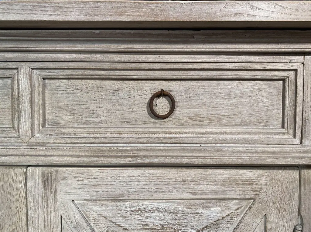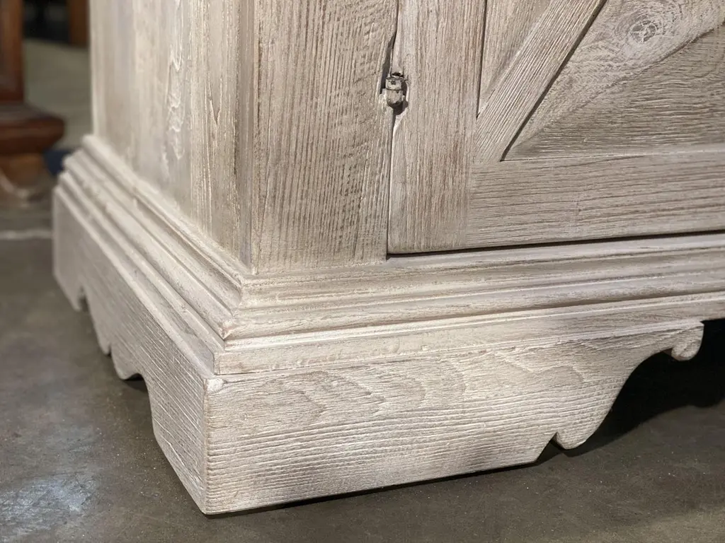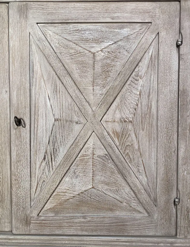 TUSCAN ALPI 4-Door + 2-Drawer Credenza in solid Old Chestnut with Dolomiti finish, includes 2 adjustable, finished interior shelves, locks & keys, with hardware options. Our exclusive custom handcrafted Mediterranean style credenza line featuring our solid Italian Old Chestnut with a brushed finish we’ve named Dolomiti, after the famous limestone ridges high in the Italian Alps.Measures: 93” Width x 20” Depth x 42” HeightAlso available to custom order:Optional finishes include:- Natural blonde shellac- Classic shellac- Espresso Dark stain shellac- Moro blackened shellacGloss, satin & distressed painted finishes also available to orderAlso available in Old Chestnut, Poplar, or Walnut with smooth or brushed grain finish.Available in 2-Door + 1-Large Drawer Credenza in solid Old Chestnut with Dolomiti finish, includes 1 adjustable, finished interior shelf, locks & keys, with hardware options.Expedited shipping service available by quote.Our Alpi style cabinet line is available by quote in custom size, configuration of doors & drawers, and interiors (including interior drawers). Optional stone and marble tops. Available in any of our solid aged wood finish & color options. Our exclusive Dolomiti finish is also available on all other cabinet styles as an optional aged chestnut finish treatment. Please inquire.Bellini’s Old World Collection styles are adapted from Renaissance designs from the 15th to 19th centuries. For over 40 years, our craftsmen have been recovering & finishing old Italian hardwoods. Their lives have been immersed in the craft of antique furniture in traditional Mediterranean styles. Each piece is artfully handcrafted with aged Italian solid hardwoods and fine-tooled hardware, built to your custom needs by quote in size, configuration, color & patina.