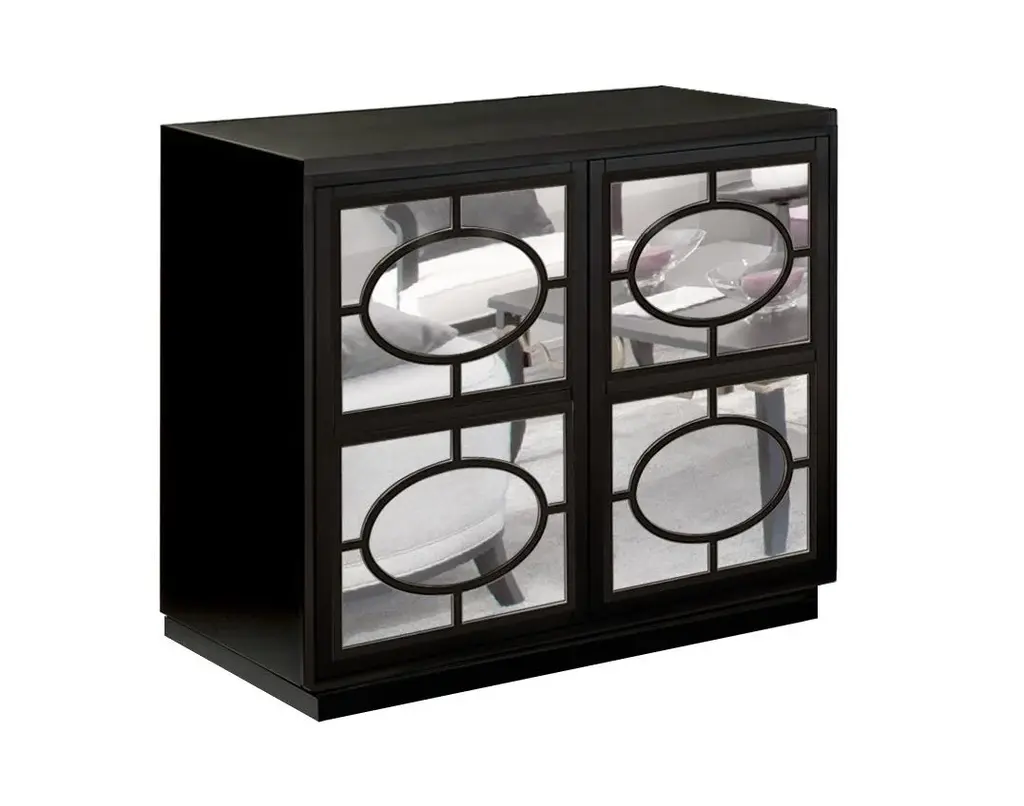 Designed by Isabella Costantini and created by skilled Italian artisans, the sideboard features 2 mirrored doors overlaid with an interesting lattice design. It’s a striking game-changer for any dining and living room, adding a touch of light and attraction to the room. It contains 1 inner shelf. Signed by Maker,Signed by Maker