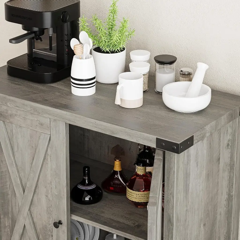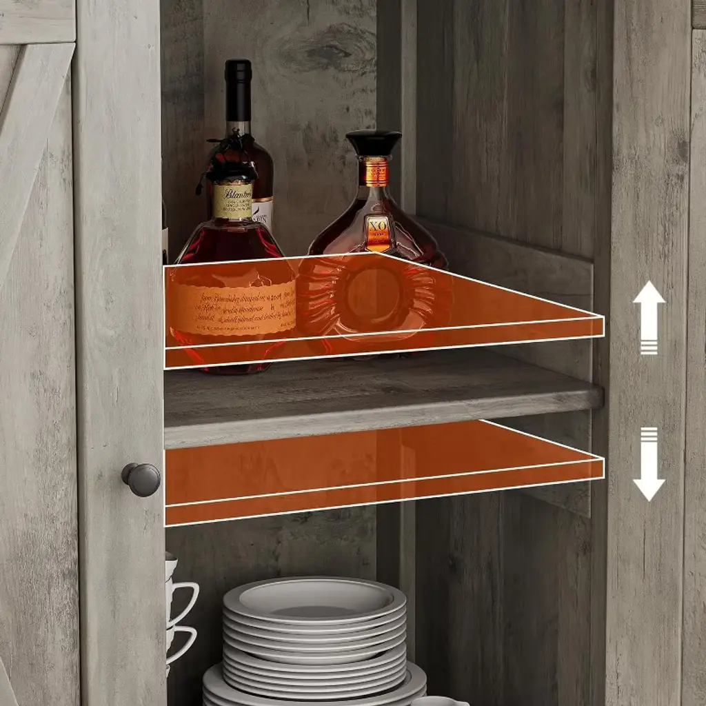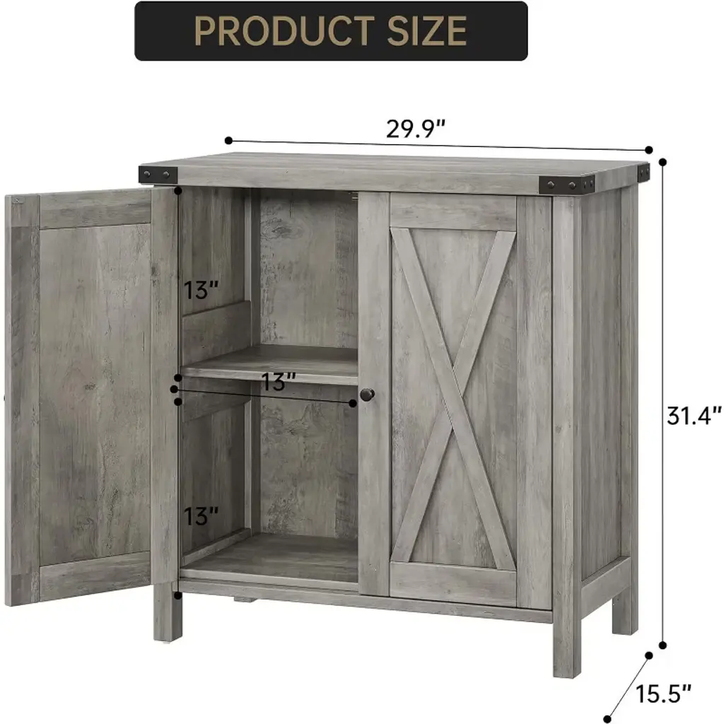 This charming 2-piece buffet cabinet set combines rustic country charm with modern functionality, featuring two matching cabinets with wood doors and spacious worktops. The main sideboard includes an adjustable interior shelf for customizable storage, while the secondary cabinet offers open shelving for display. Perfect for kitchens, dining rooms, or living rooms, the distressed finish and vintage hardware create a warm farmhouse aesthetic. The sturdy construction supports heavy servingware, and the generous work surface provides ample space for food prep or display. Easy assembly with all hardware included.
