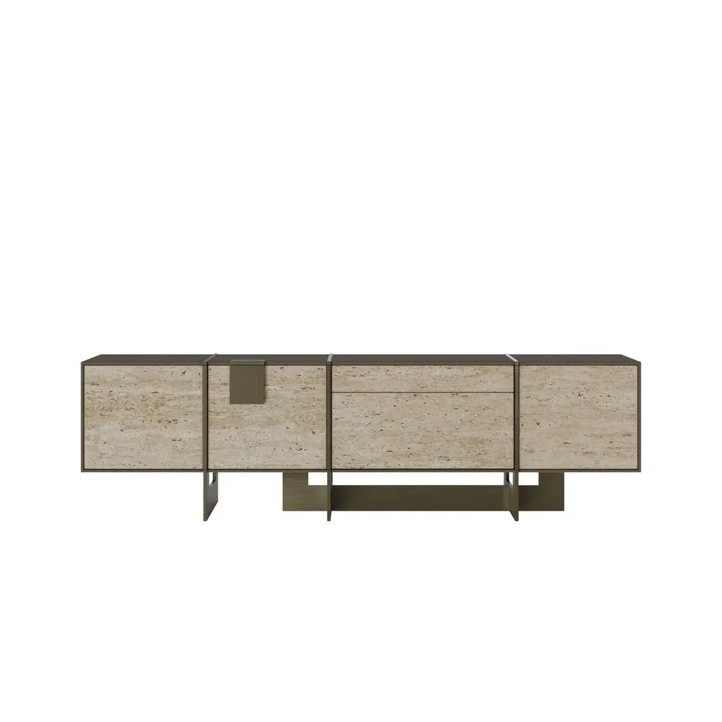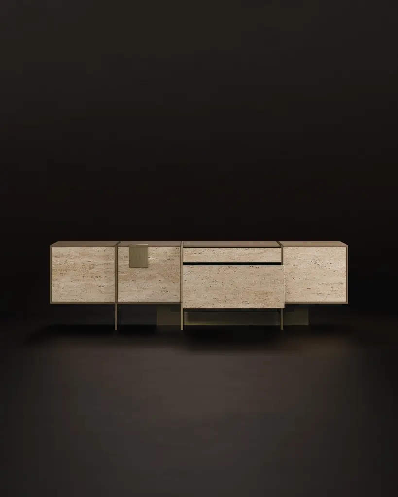 21st Century Coloma Sideboard Leather Travertine Brass Made In Portugal By Porus