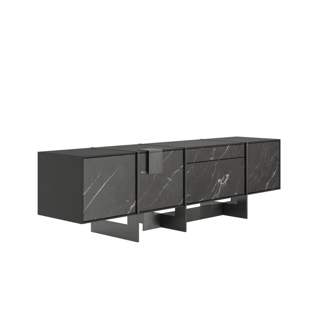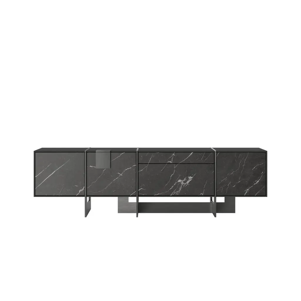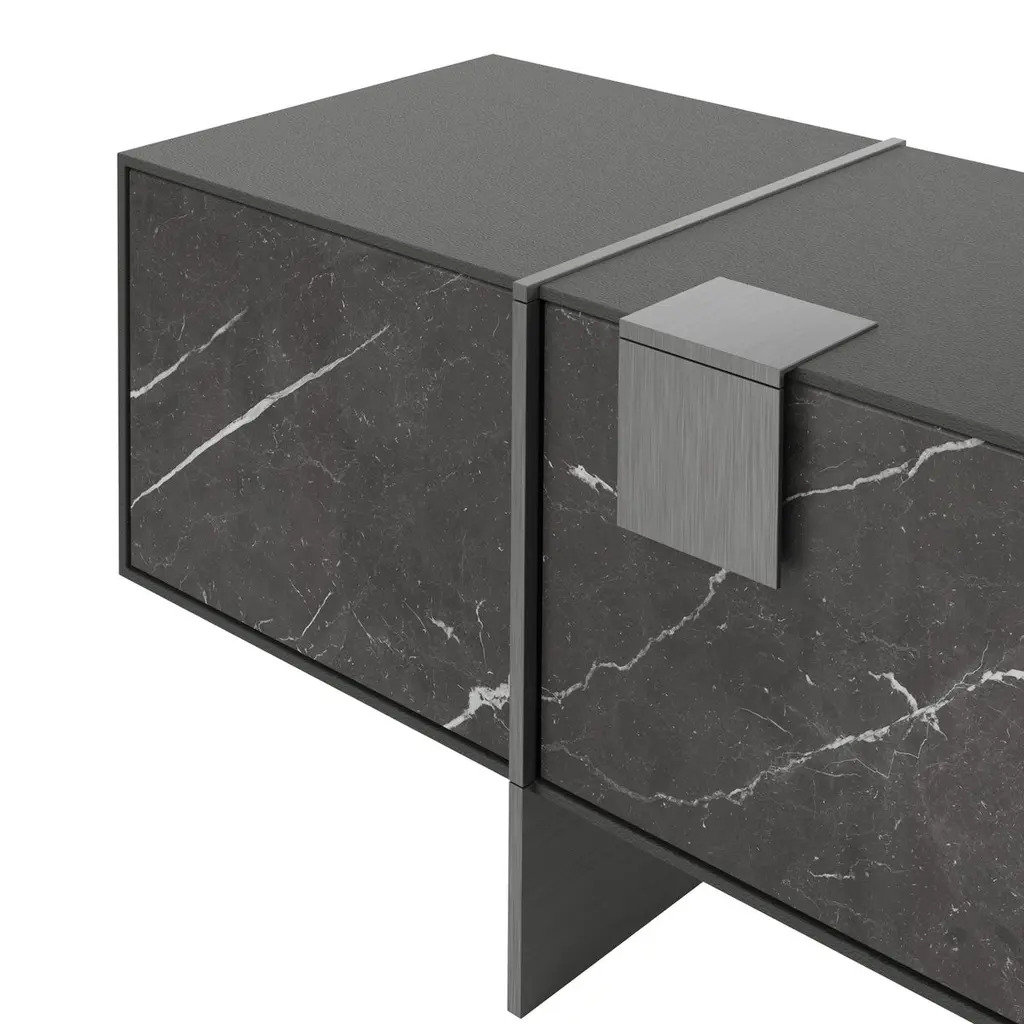 Coloma, in California, is renowned for being the scene where James W. Marshall first found gold in the Sierra Nevada, at Sutter’s Mill in 1848, leading to the California Gold Rush.The brushed gun metal details embrace the main structure of the Coloma contemporary sideboard, reflecting our inspiration in the Gold Rush and consequently Coloma, where the whole story started. The sideboard's structure features four Grey Kendzo marble doors. The Coloma sideboard is a mesmerizing contemporary furniture piece essential to any luxurious space.
