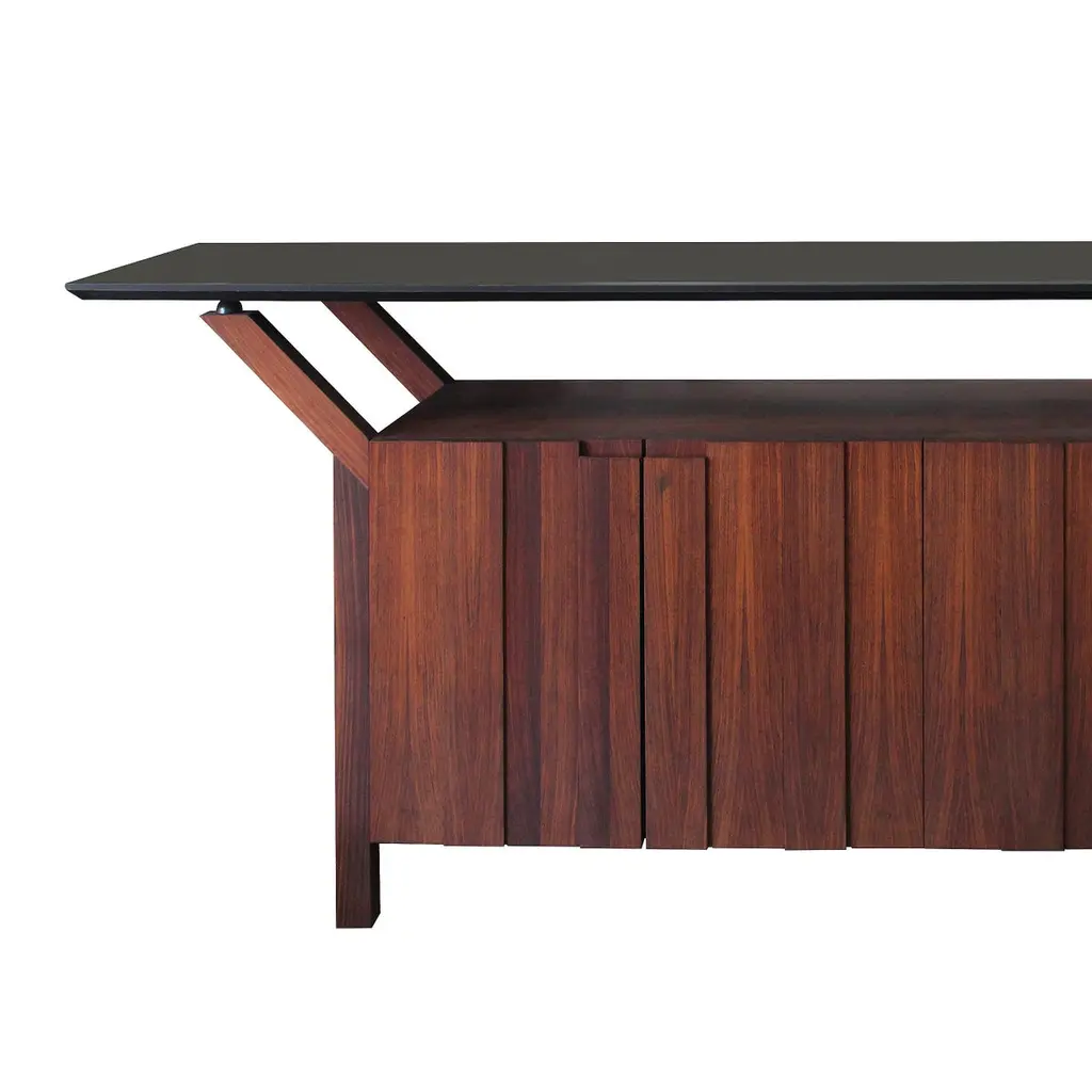 The Sweden sideboard, designed by architect Roberto Cappelli, blends traditional materials and new technologies for a clean, elegant design inspired by Swedish furniture of the 1950s and 1960s. The structure and containers are in Brazilian rosewood and oak, while the top is in Fenix, a new material designed with nanotechnology that is very opaque, fingerprint resistant and incredibly soft to the touch.BespokeCustomization is our specialty. We are open to the design and creation of fully customized pieces. Designer - Roberto CappelliThe Company identity - Hebanon Fratelli Basile - 183042 are the wooden species kept in our vault of centuries-old veneers, 5 of which are endangered; 2 are the result of anomalies: woods tell as much about humanity as people do.In Hebanon Fratelli Basile 1830 we operate with respect for man and the environment,using only non-toxic products for human health, formaldehyde free, wood with forest certifications and recovering processing waste as a source of complementary energy.All products are 100% certified Designed and manufactured in Italy, branded and identified by an identification number and holographic mark that guarantee their uniqueness and originality in the world.LanguageOur language stems from our cultural heritage coming from the Kingdom of the two Sicilies and from cabinetmaking of which we have internalized the discipline, technique and vision. - The carvings: they become elements that sculpt the air and dictate the rhythm of space; a game of seduction between opposites: hot and cold, masculine and feminine, natural and precious materials, pure and primary shapes alternating with organic forms of nature.- The inlays: they lose the only decorative value, acquiring in themselves the narrative value of the object; perspectives, optical illusions, sometimes provocative, sometimes sensual, sometimes ethereal and elusive, natural materials and textures that anthropomorphize nature.Prices do not include shipping from Italy.
