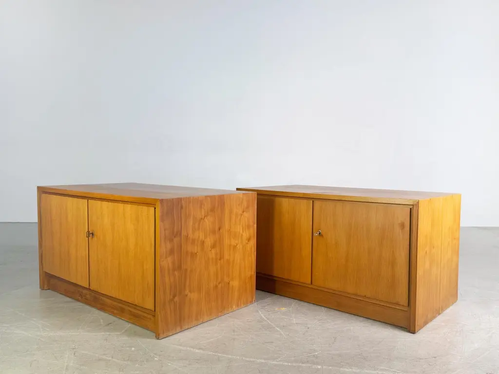 Wir bieten zwei wunderschöne kleine WK Möbel Sideboards aus den 1960er Jahren zum Verkauf an. Die Sideboard verfügen jeweils über zwei Türen und wurden aus hochwertigem Nussbaumholz gefertigt.Preis pro StückBei Abnahme von beiden Exemplaren ist ein günstigerer Setpreis möglich.Zustand: Guter gebrauchter Zustand mit altersbedingten Gebrauchspuren. (siehe Bilder)Hersteller: WK MöbelDesigner: keine AngabeHerkunftsland: DeutschlandEpoche: 1960er, Mid CenturyMaterial: Nussbaum,Maße ca.: Breite: 102cm, Tiefe: 55cm, Höhe 55cmProdukt-ID: 2802