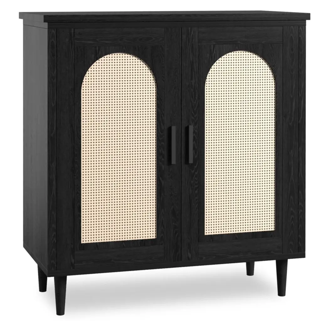 30.51" Sideboard Buffet Cabinet With Rattan, Solid Wood Feet, Kitchen And Living Room Storage With Ample Space