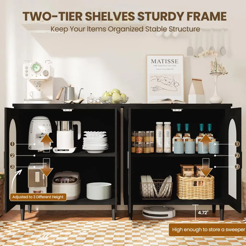 Feature:This 30.51" sideboard buffet cabinet combines style and functionality for kitchen, dining, and living spaces. The rattan front panels add a natural and rustic charm, while solid wood feet provide sturdy support. The cabinet offers ample storage with multiple compartments to organize kitchenware, dishes, or decorative items. Its versatile design makes it suitable for hallways, entryways, or any room in the home, ensuring both practical storage and aesthetic appeal.Package Included:1 × 30.51" Sideboard Buffet Cabinet with Rattan and Solid Wood Feet