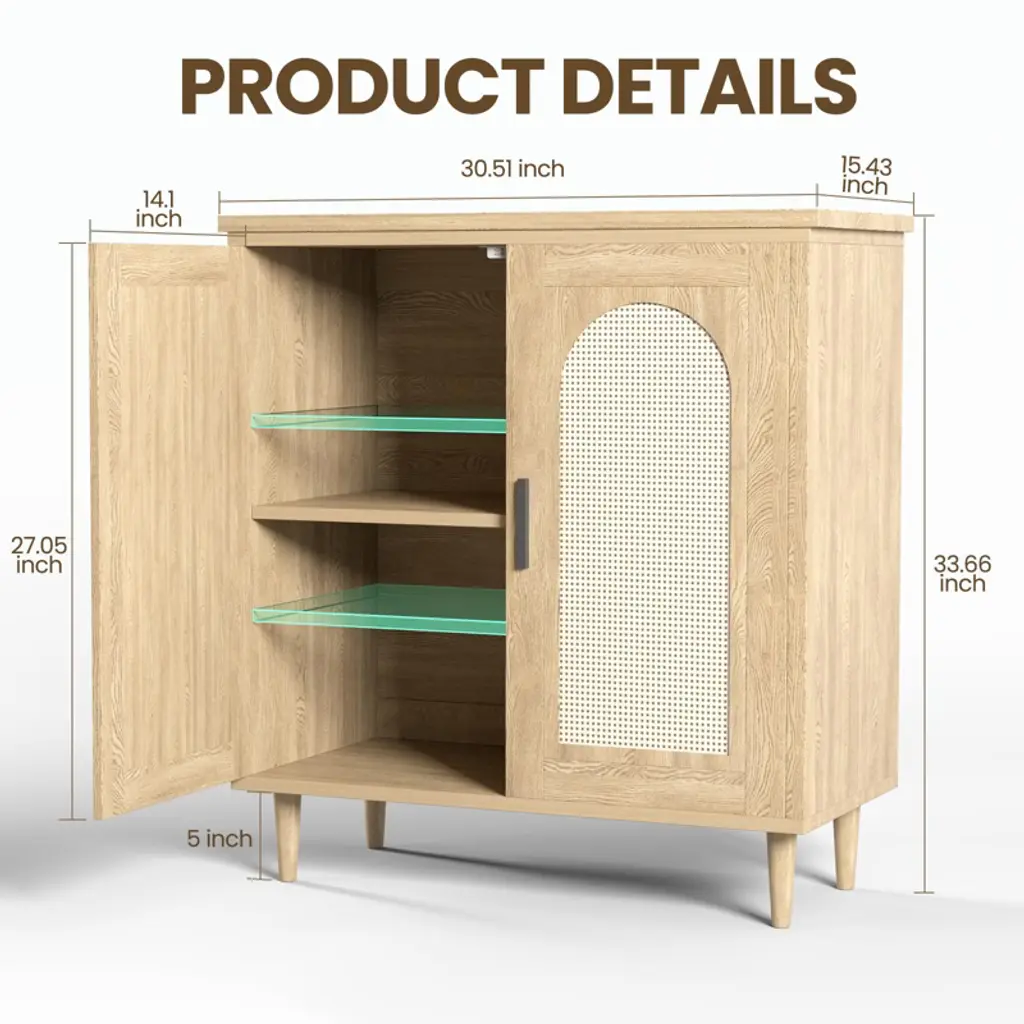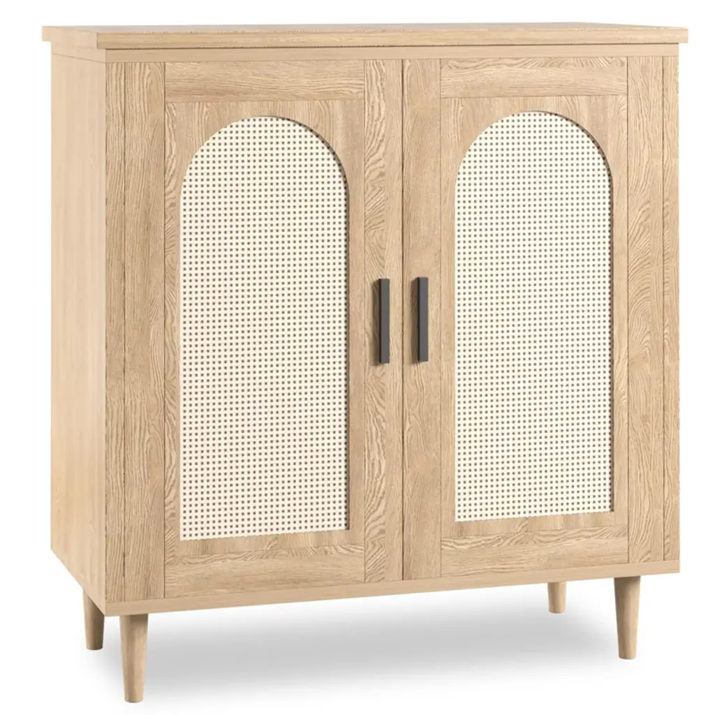 30.51" Sideboard Buffet Cabinet With Rattan, Solid Wood Feet, Kitchen And Living Room Storage With Ample Space