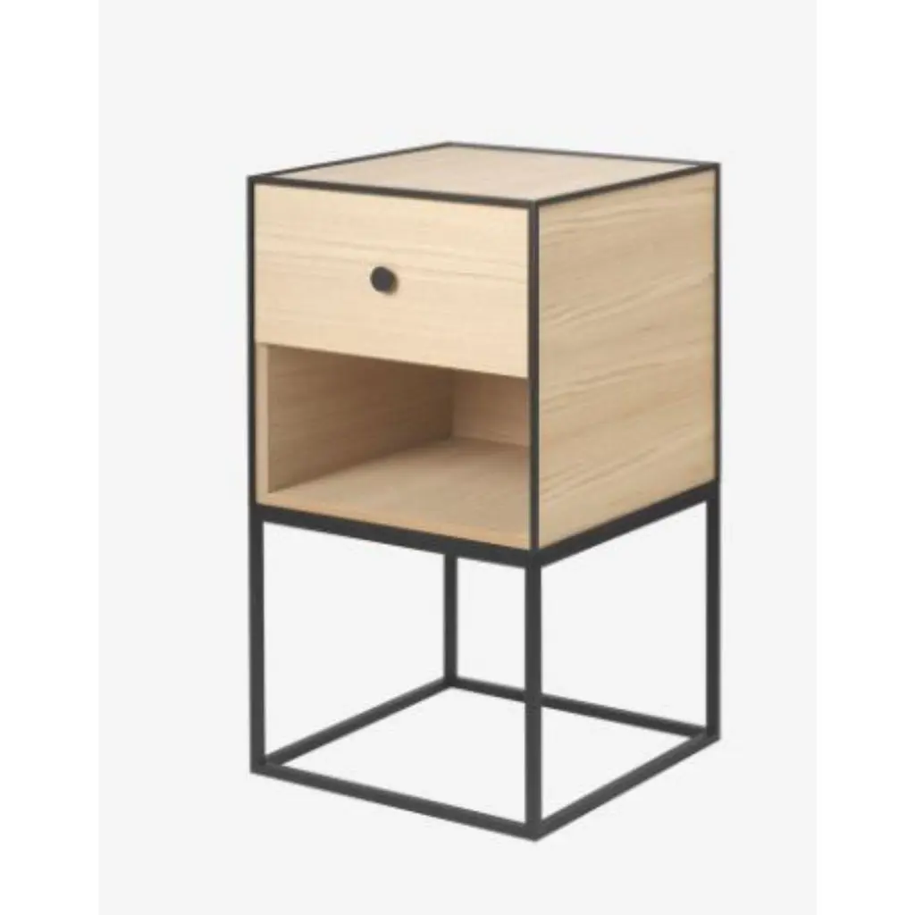 35 oak frame sideboard with 1 drawer by LassenDimensions: W 35 x D 35 x H 63 cm Materials: Finér, Melamin, Melamine, Metal, Veneer, OakAlso available in different colors and dimensions. Weight: 15.50 KgBy Lassen is a Danish design brand focused on iconic designs created by Mogens and Flemming Lassen, founded by Lassens’ relatives in 2008. Brothers Mogens (1901-1987) and Flemming (1902-1984) Lassen are known as two of Denmark’s greatest architects and designers. Both were renowned pioneers of Danish functionalism and modernist architecture, honoured with numerous prestigious medals and awards. Headed by Mogens Lassen’s grandson Søren Lassen, by Lassen carries on the brothers’ design philosophy by manufacturing their iconic designs as well as products by other designers that complement the Lassen’s functionalist style. The company’s mission is to continue the tradition of timelessness, functionality and quality, and to introduce the Lassen’s design heritage to new generations.