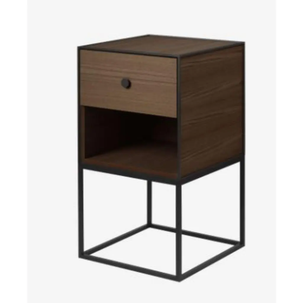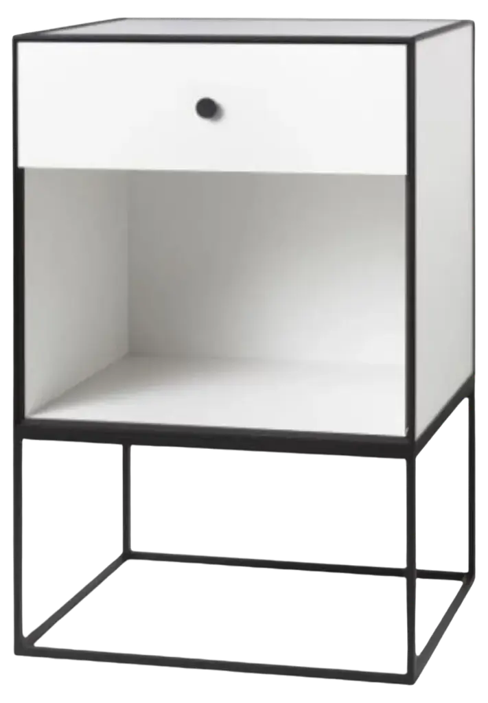 35 sand frame sideboard with 1 drawer by LassenDimensions: w 35 x d 35 x h 63 cm Materials: Finér, Melamin, Melamine, Metal, VeneerAlso available in different colors and dimensions. Weight: 15.50 KgBy Lassen is a Danish design brand focused on iconic designs created by Mogens and Flemming Lassen, founded by Lassens’ relatives in 2008. Brothers Mogens (1901-1987) and Flemming (1902-1984) Lassen are known as two of Denmark’s greatest architects and designers. Both were renowned pioneers of Danish functionalism and modernist architecture, honoured with numerous prestigious medals and awards. Headed by Mogens Lassen’s grandson Søren Lassen, By Lassen carries on the brothers’ design philosophy by manufacturing their iconic designs as well as products by other designers that complement the Lassen’s functionalist style. The company’s mission is to continue the tradition of timelessness, functionality and quality, and to introduce the Lassen’s design heritage to new generations.