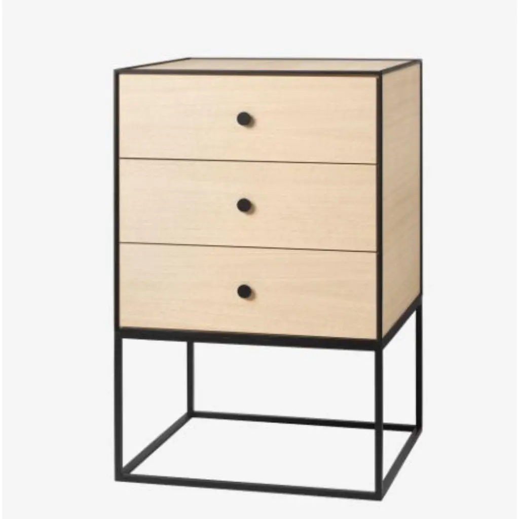 49 black ash frame sideboard with 3 drawers by Lassen.Dimensions: D 49 x W 42 x H 77 cm Materials: Finér, Melamin, Melamine, Metal, Veneer, ashAlso available in different colours and dimensions.Weight: 21 KgBy Lassen is a Danish design brand focused on iconic designs created by Mogens and Flemming Lassen, founded by Lassens’ relatives in 2008. Brothers Mogens (1901-1987) and Flemming (1902-1984) Lassen are known as two of Denmark’s greatest architects and designers. Both were renowned pioneers of Danish functionalism and modernist architecture, honoured with numerous prestigious medals and awards. Headed by Mogens Lassen’s grandson Søren Lassen, By Lassen carries on the brothers’ design philosophy by manufacturing their iconic designs as well as products by other designers that complement the Lassen’s functionalist style. The company’s mission is to continue the tradition of timelessness, functionality and quality, and to introduce the Lassen’s design heritage to new generations.