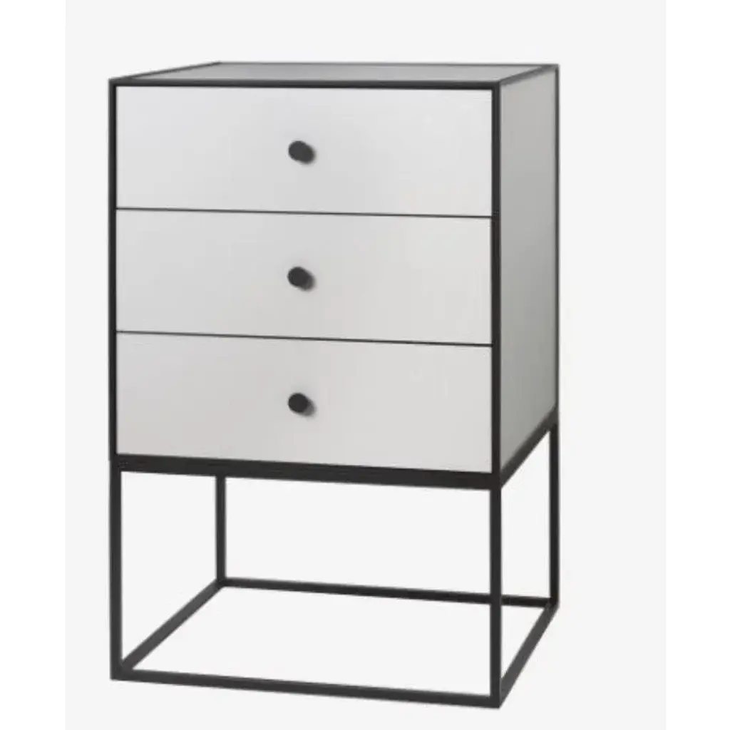 49 light grey frame sideboard with 3 drawers by Lassen Dimensions: D 49 x W 42 x H 77 cm Materials: finér, melamin, melamine, metal, veneer Also available in different colours and dimensions. Weight: 21 Kg