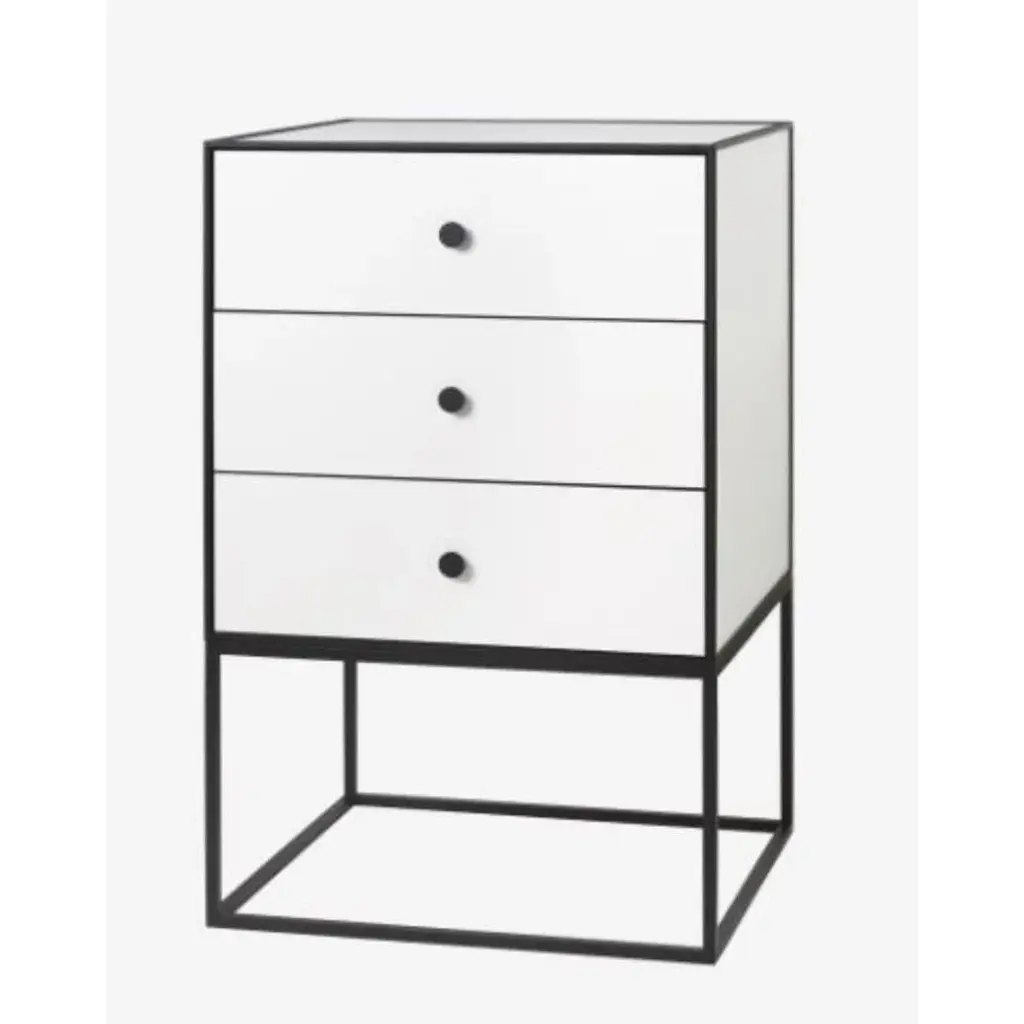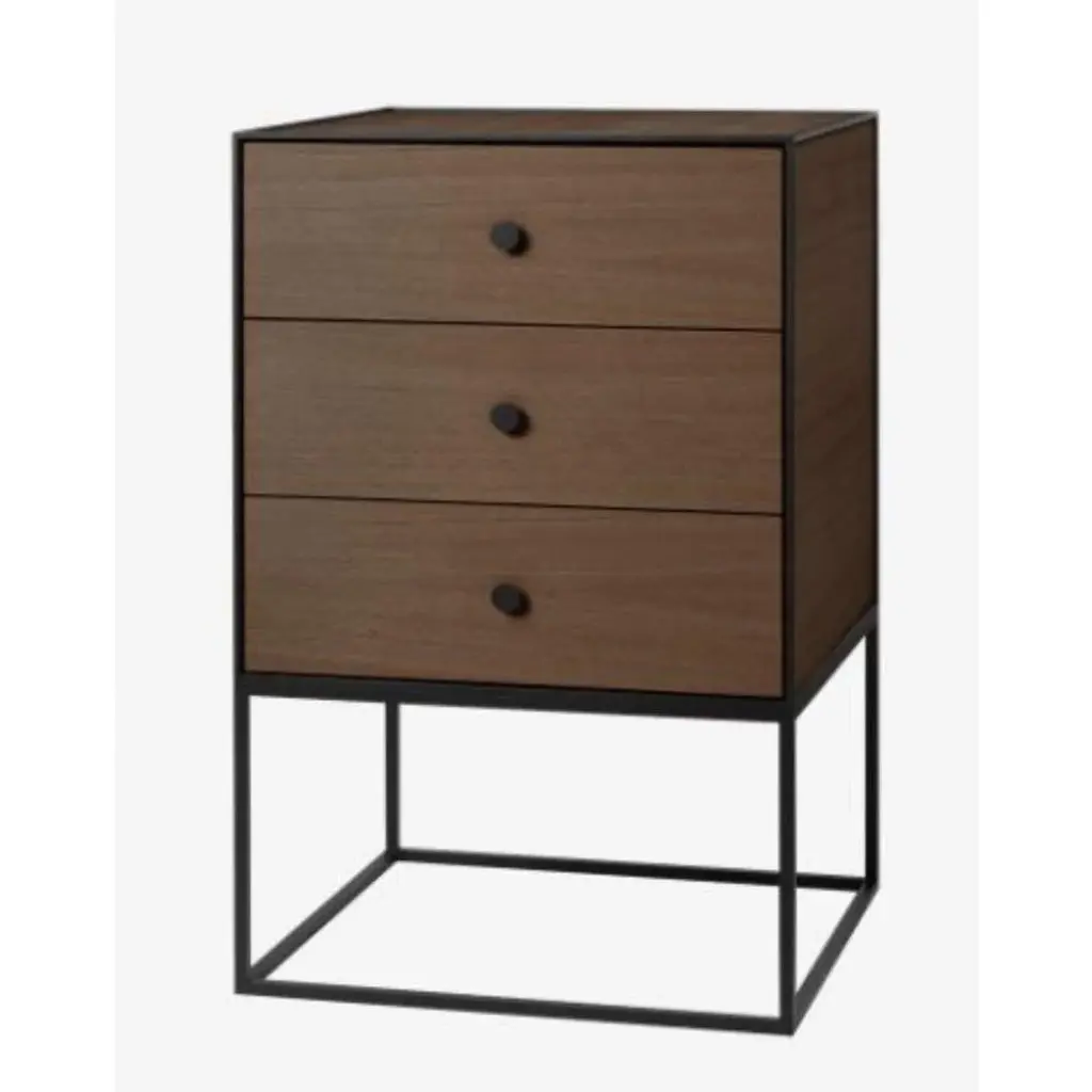 49 smoked oak frame sideboard with 3 drawers by Lassen Dimensions: D 49 x W 42 x H 77 cm Materials: Finér, Melamin, Melamine, Metal, Veneer, Oak Also available in different colors and dimensions. Weight: 21 Kg