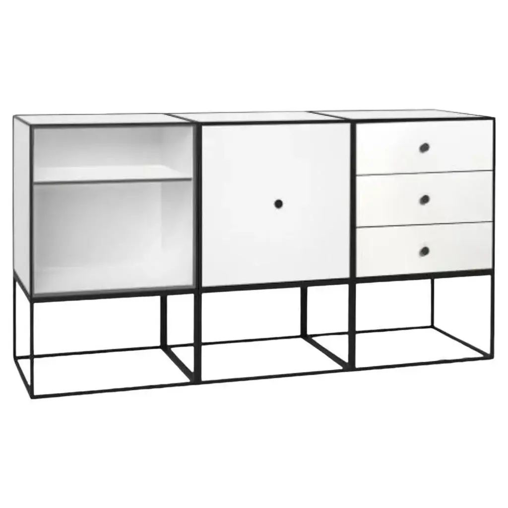 49 white frame sideboard trio by Lassen. Dimensions: D 147 x W 42 x H 77 cm. Materials: Finér, Melamin, Melamine, Metal, Veneer. Also available in different colors and dimensions. Weight: 88 Kg