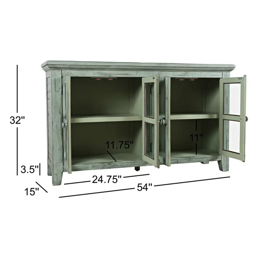 About This Product This sideboard completes your living room or dining room with extra storage wrapped in a classic style. It's crafted from solid & engineered wood with a distressed finish, and it has a rectangular silhouette that measures over 5.5' wide. The design features a pair of cabinets with four doors with glass scooped panels—great for showing off your favorite dishware inside. We love the crown molding and round cabinet handles that complete the traditional look. Hand-curated by Kelly Clarkson. Features 4mm tempered glass door fronts Fully assembled