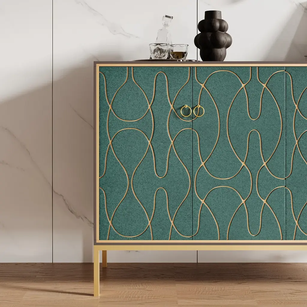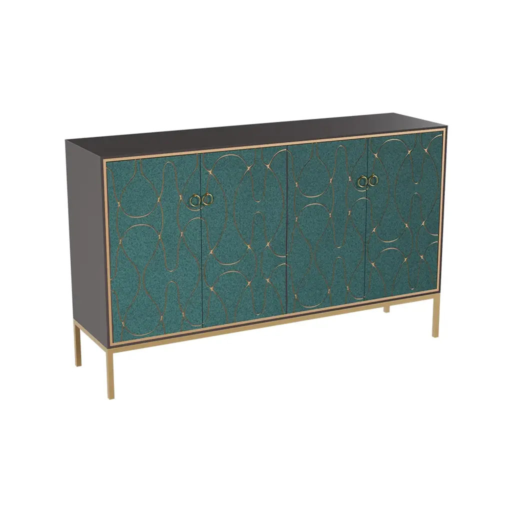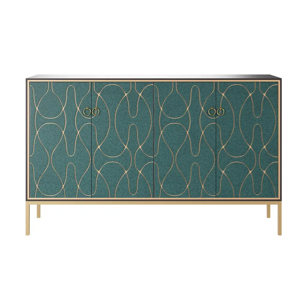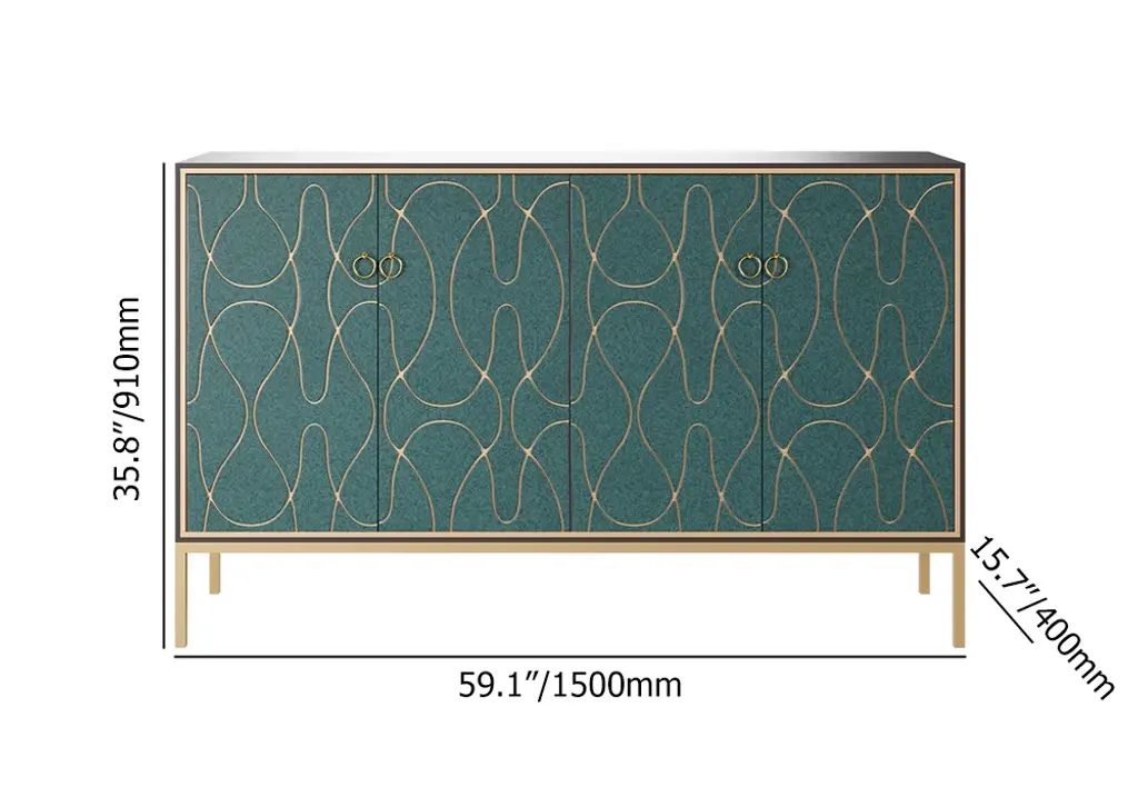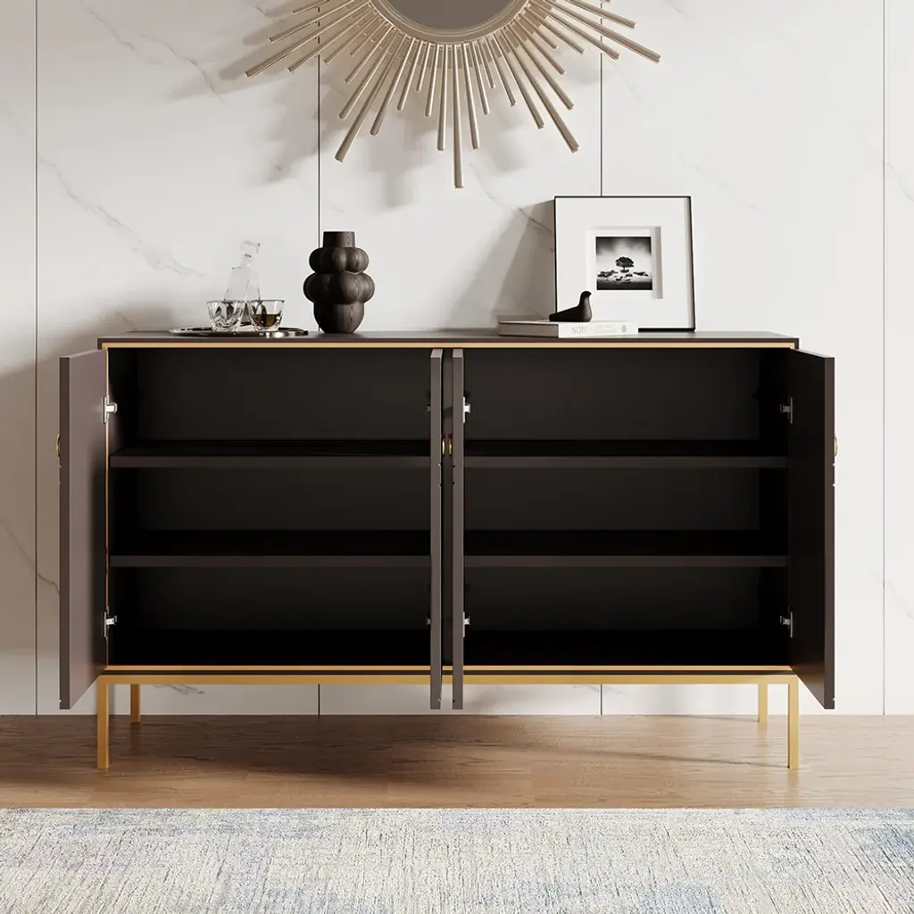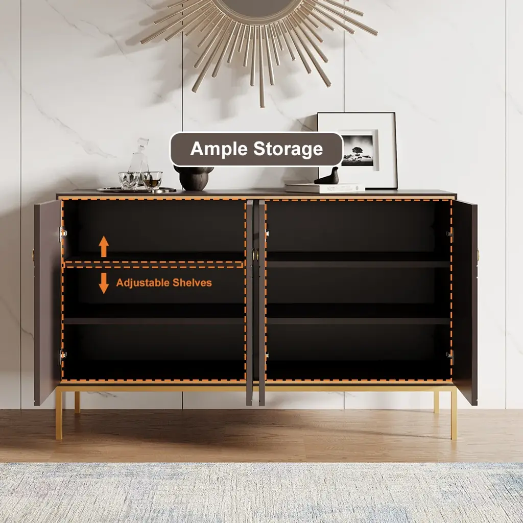 Add a statement piece in the living room, or extra storage space in the dining room with this stylish sideboard. The geometric design carved into the doors makes it an attractive addition to any decor. Four doors reveal four interior shelves ideal for cutlery, napkins, or table mats. Constructed from quality MDF and stainless steel hardware, it ensures sturdy support and stability for a timeless look and beauty.