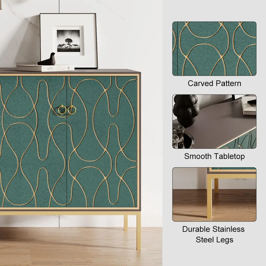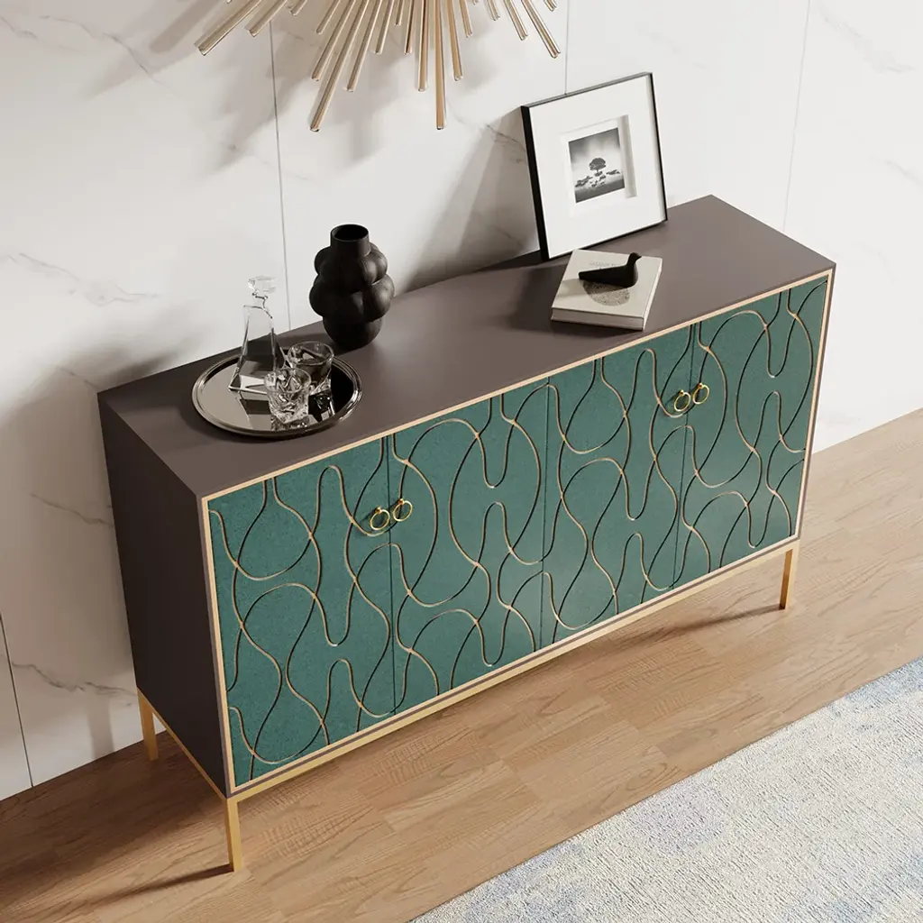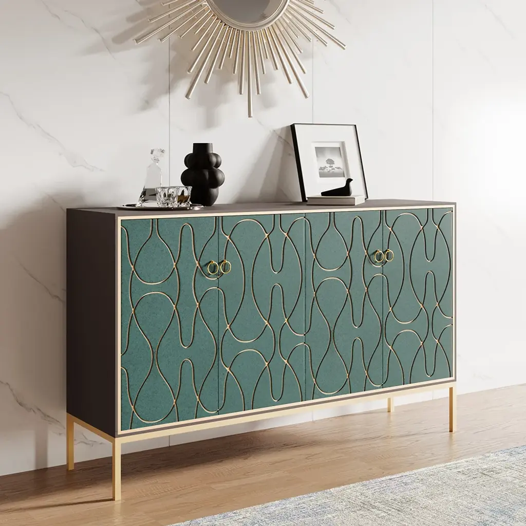 59" Modern Lake Blue Sideboard Buffet With Doors Carved Credenza Adjustable Shelves